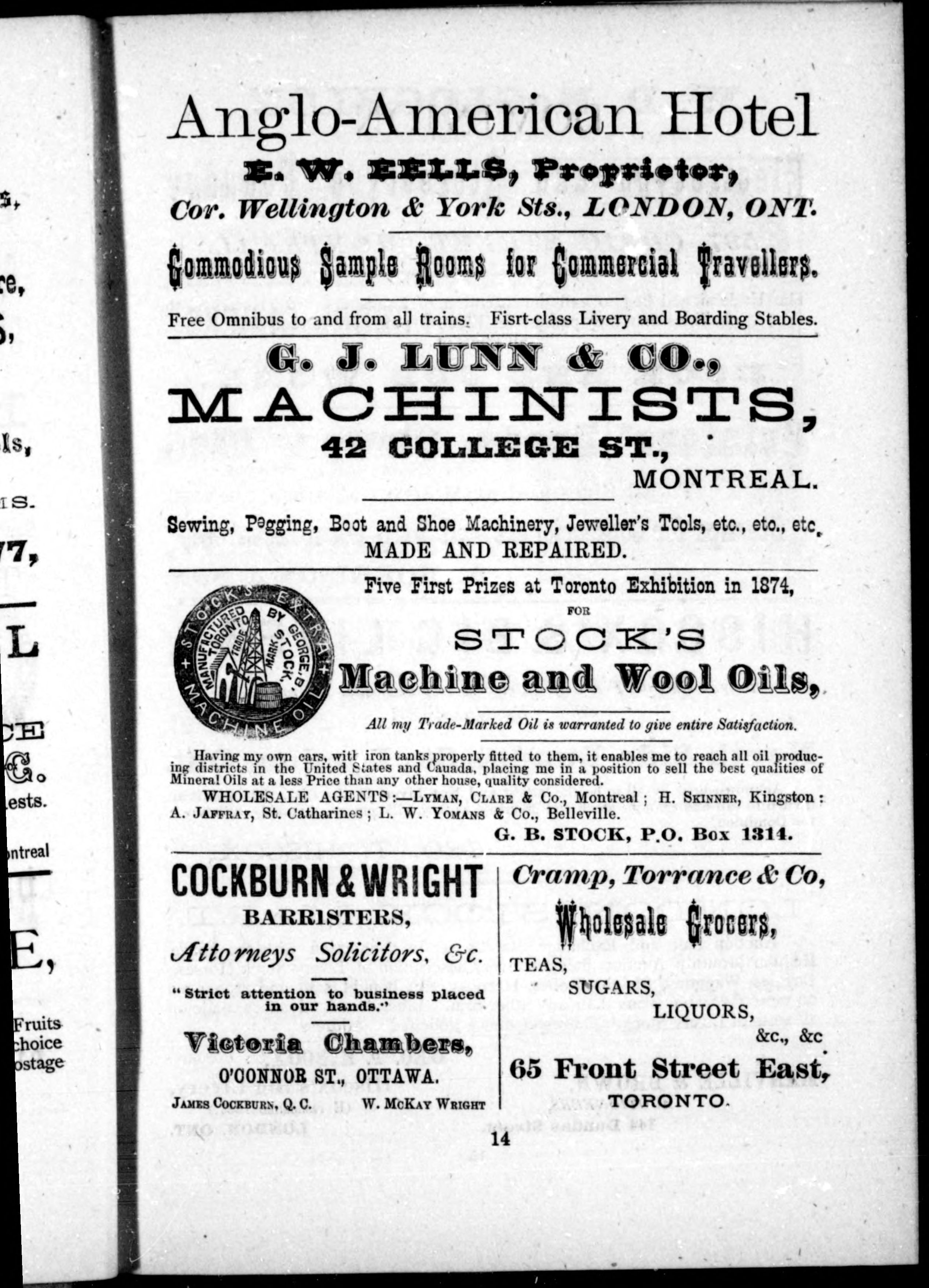 Boyd's combined business directory for 1875-6 : containing an alphabetical list of all the merchants, manufacturers, tradesmen, &c. of Montreal, Toronto, Hamilton, Ottawa, London & Kingston arranged under their proper headings, also, a complete appendix of the government historical sketch of each city, &c.