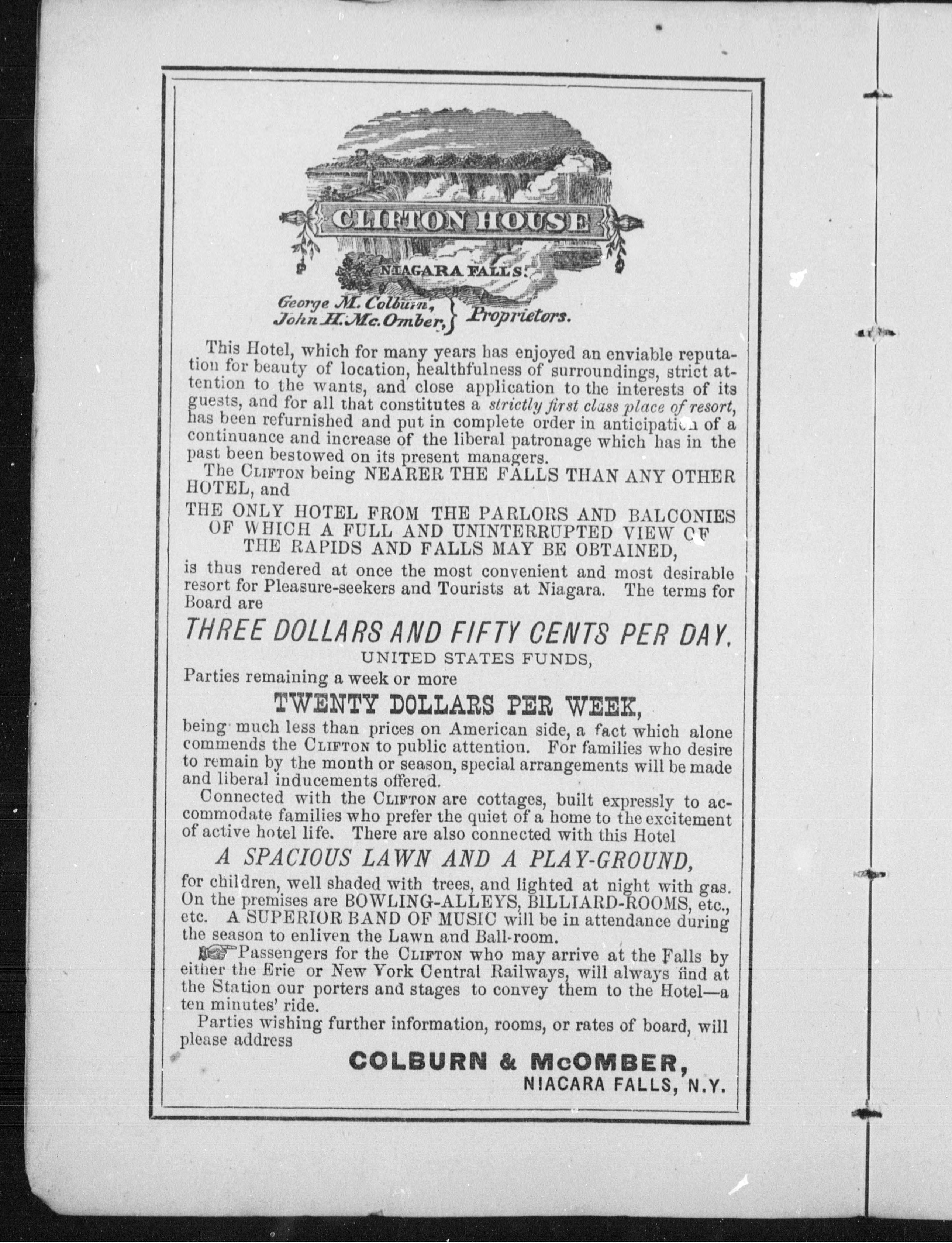 "The Hudson River; Saratoga; Trenton Falls; Niagara; Toronto; Thousand Islands, and the River St. Lawrence; Ottawa; Montreal; Quebec; the lower St. Lawrence and the Saguenay rivers; the White Mountains; Portland; Boston; New York"