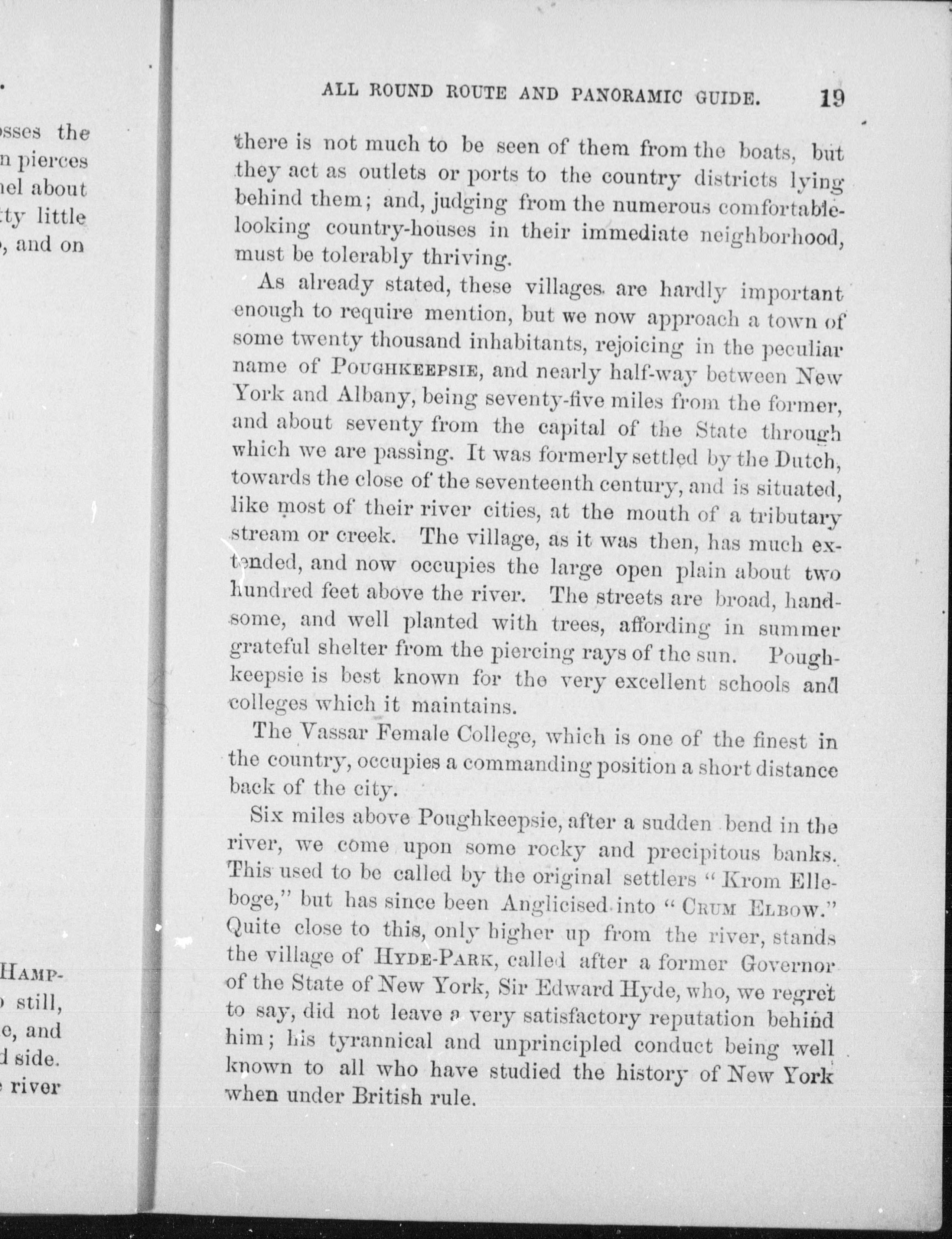 "The Hudson River; Saratoga; Trenton Falls; Niagara; Toronto; Thousand Islands, and the River St. Lawrence; Ottawa; Montreal; Quebec; the lower St. Lawrence and the Saguenay rivers; the White Mountains; Portland; Boston; New York"