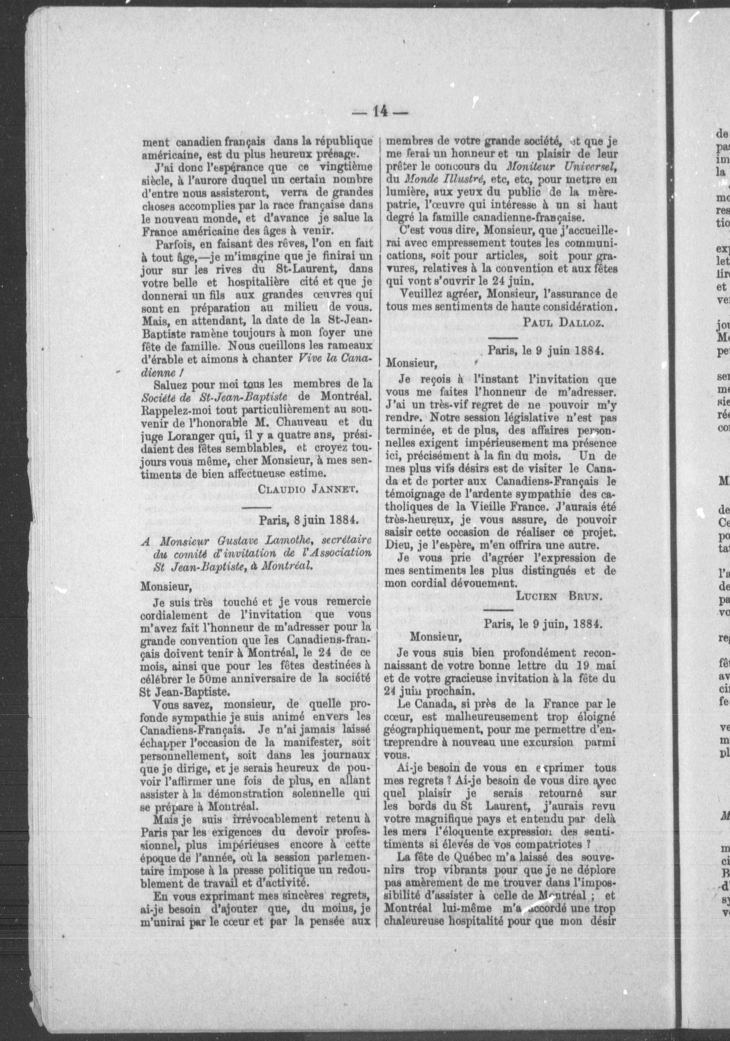 - Grande cinquantenaire de la St-Jean Baptiste : discours des canadiens éminents faits tant au congrès national qu'au banquet suivi d'une description complète de toutes les fêtes