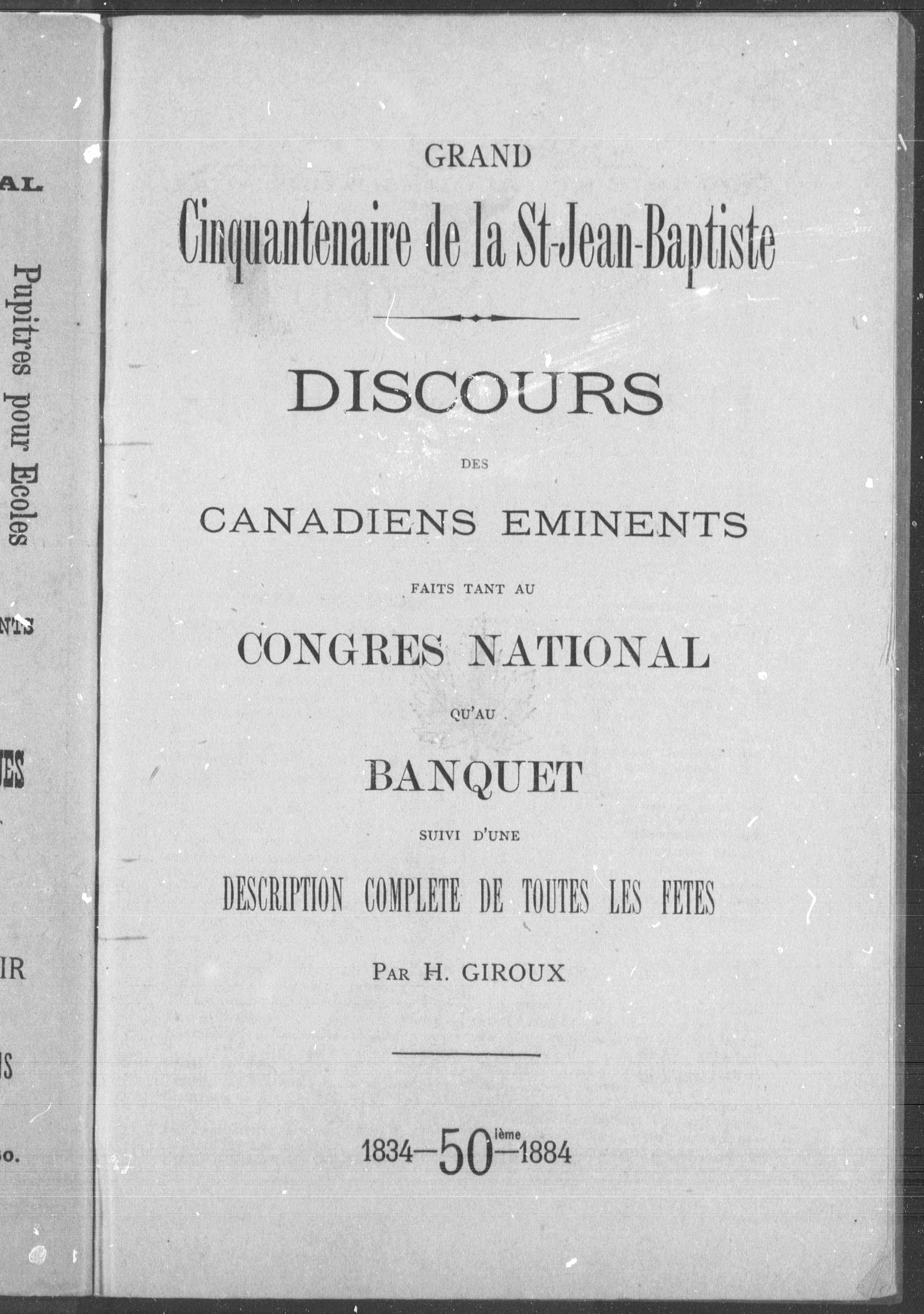 - Grande cinquantenaire de la St-Jean Baptiste : discours des canadiens éminents faits tant au congrès national qu'au banquet suivi d'une description complète de toutes les fêtes