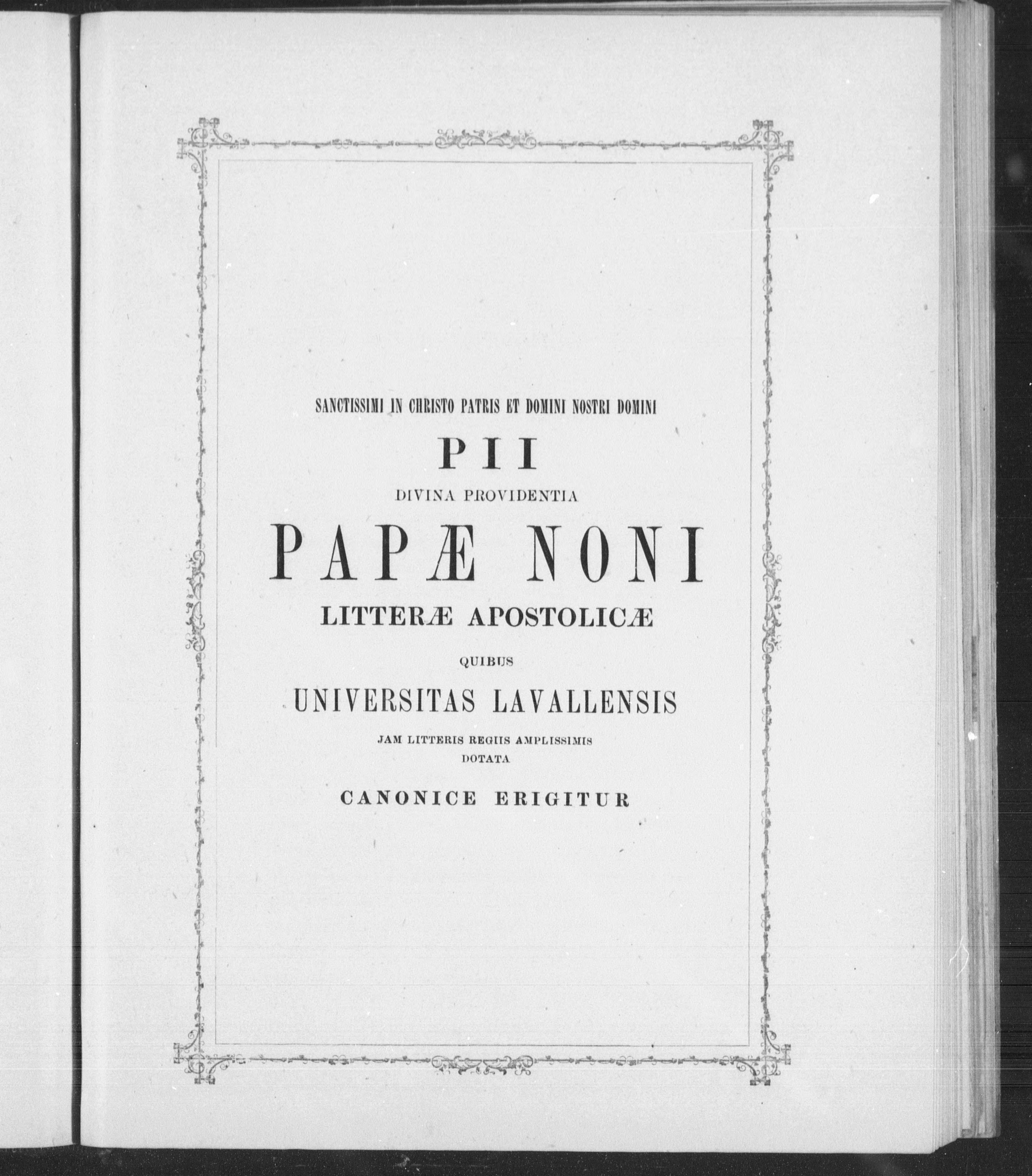 Documents relatifs à l'erection canonique de l'Université Laval.