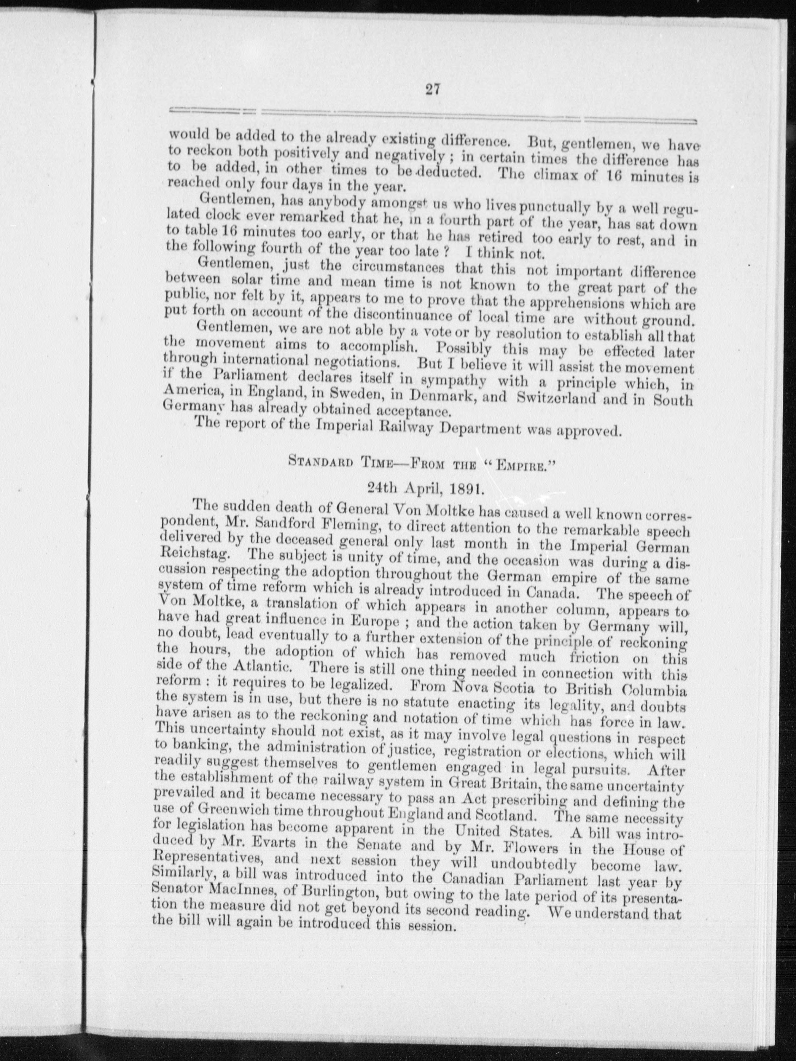 Documents relating to the fixing of a standard of time and the legalization thereof.