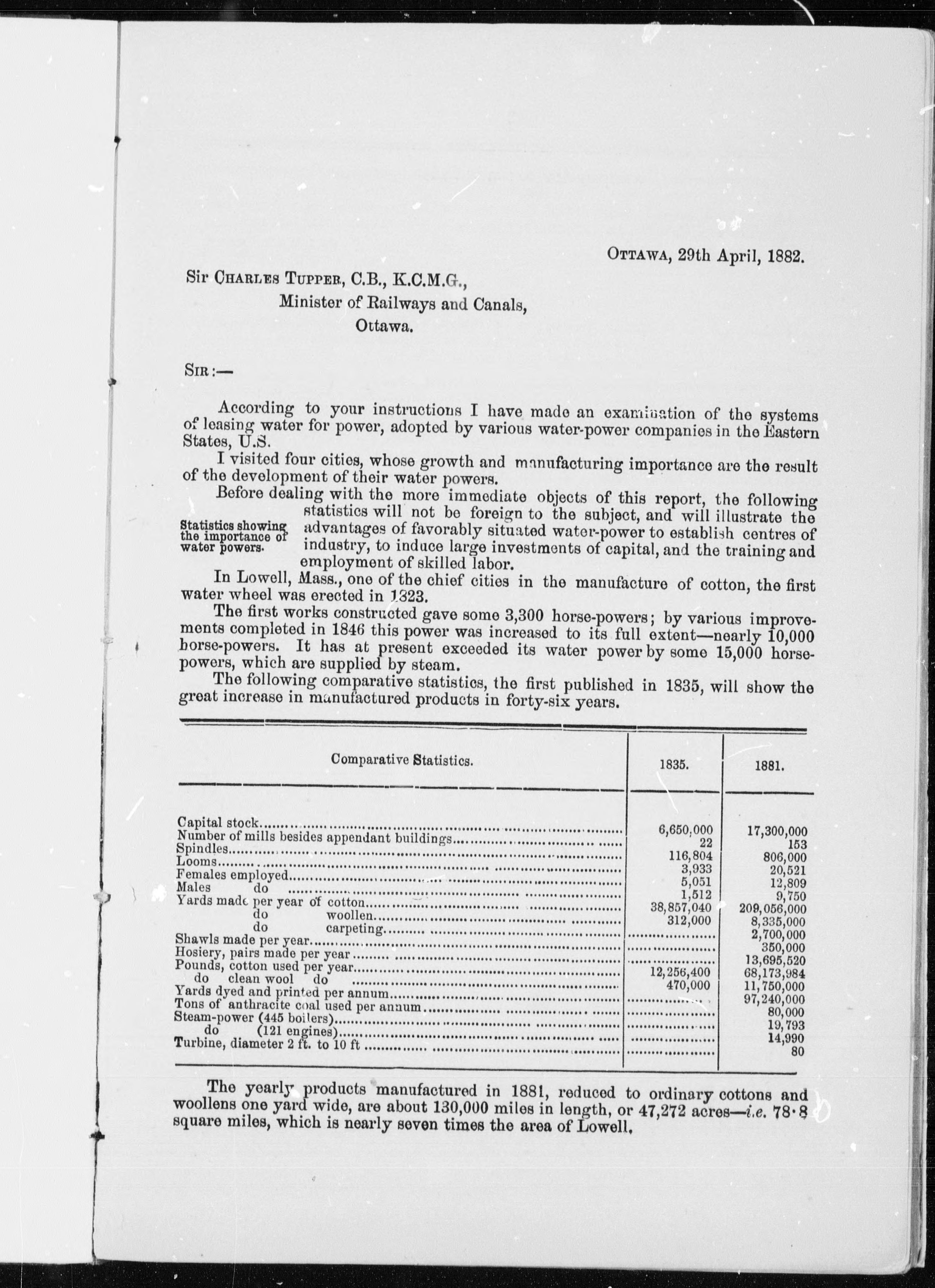 Confidential reports to the Hon. Sir Charles Tupper, K.C.M.G., C. B., Minister of Railways and Canals, on the hydraulic powers situated upon the St. Lawrence and Welland canals