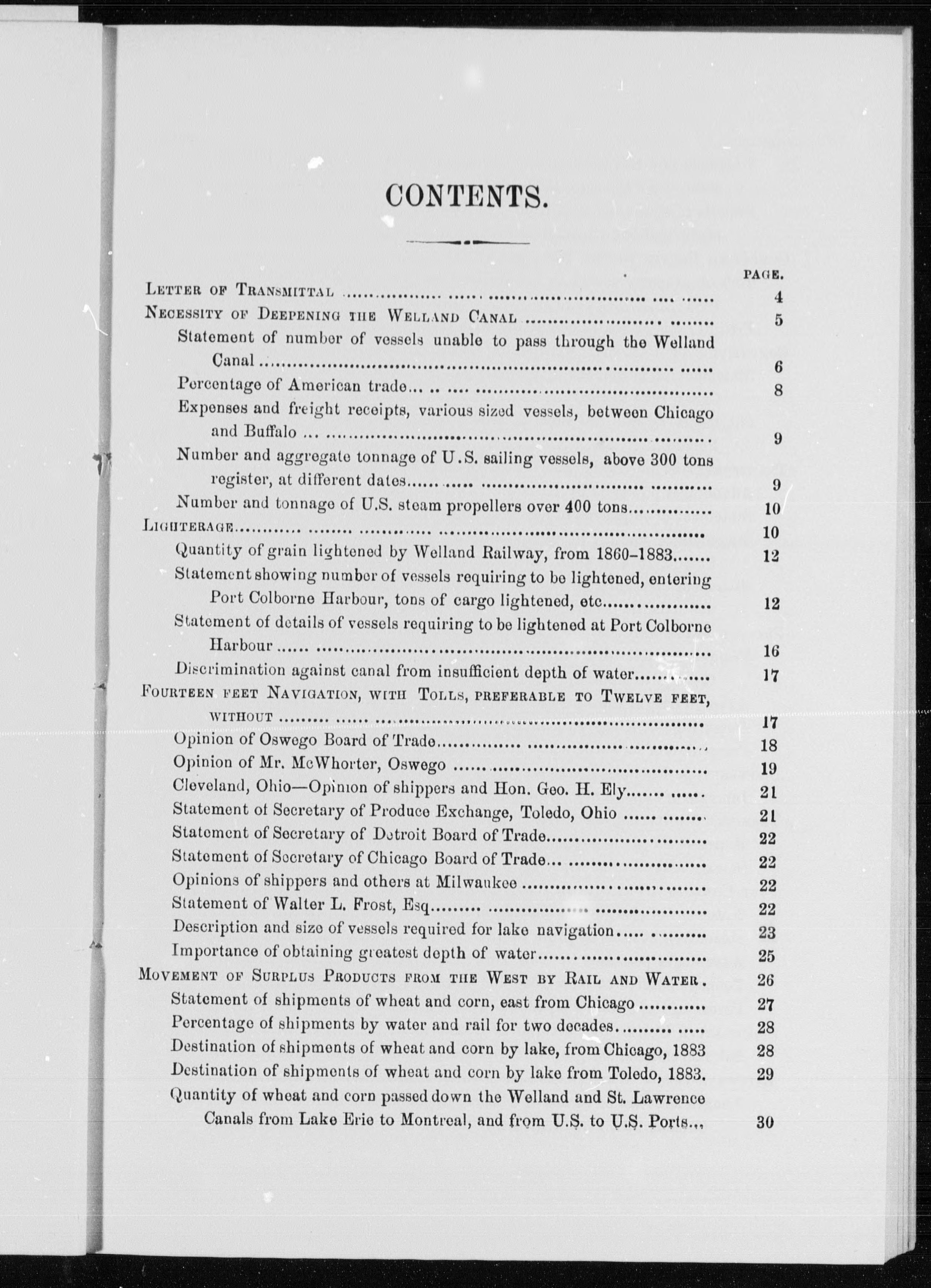 - Report to the Hon. J.H. Pope, Acting Minister, Department of Railways and Canals, on the necessity of deepening the Welland Canal : and on transportation, commerce and canal tolls, affecting the St. Lawrence water-route to the sea-board