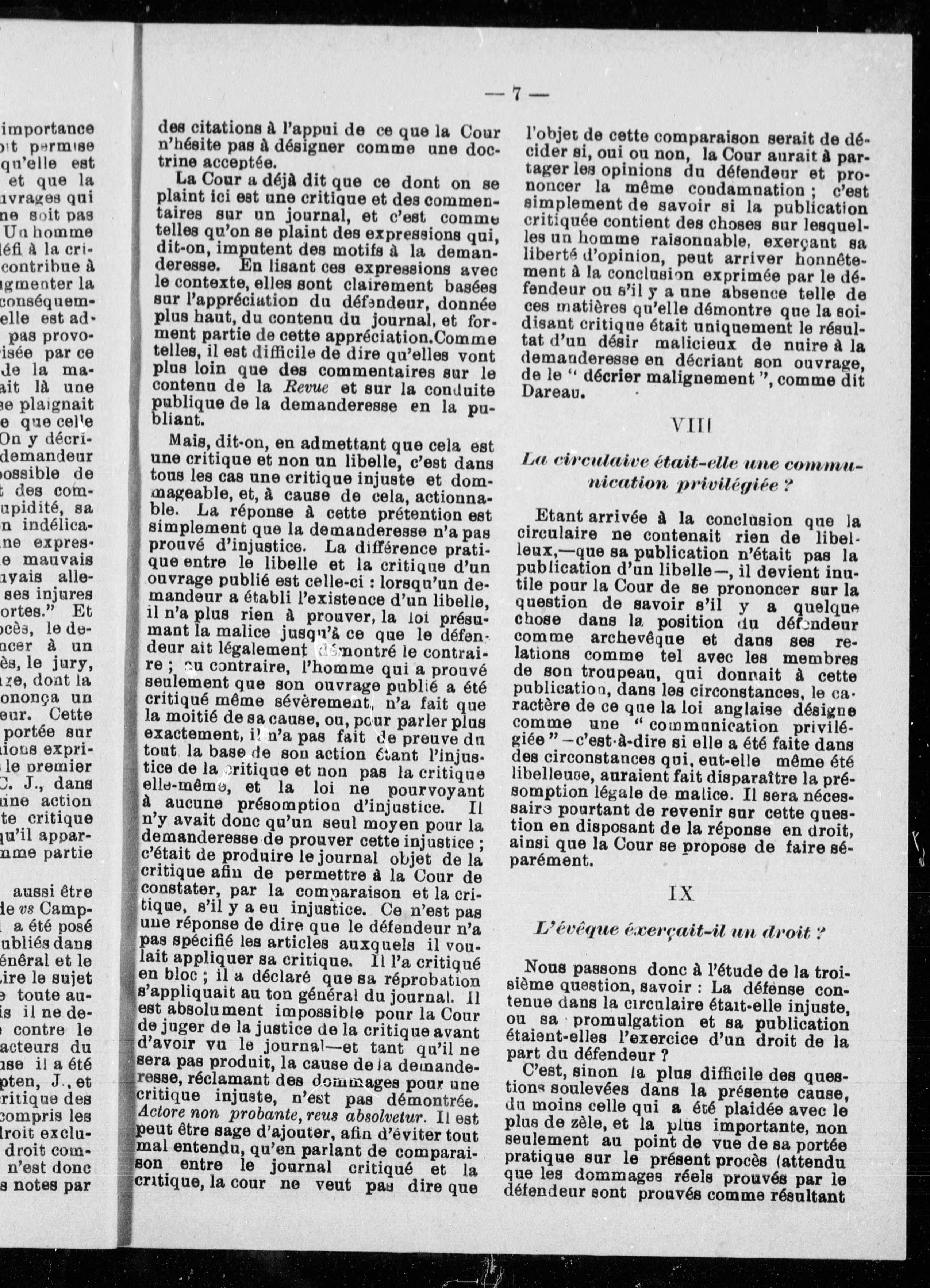 Les droits de l'évêque : la "Canada revue" vs Mgr Fabre : jugement de l'Honorable Juge Doherty (traduit de l'anglais). - Adresse bibliographique