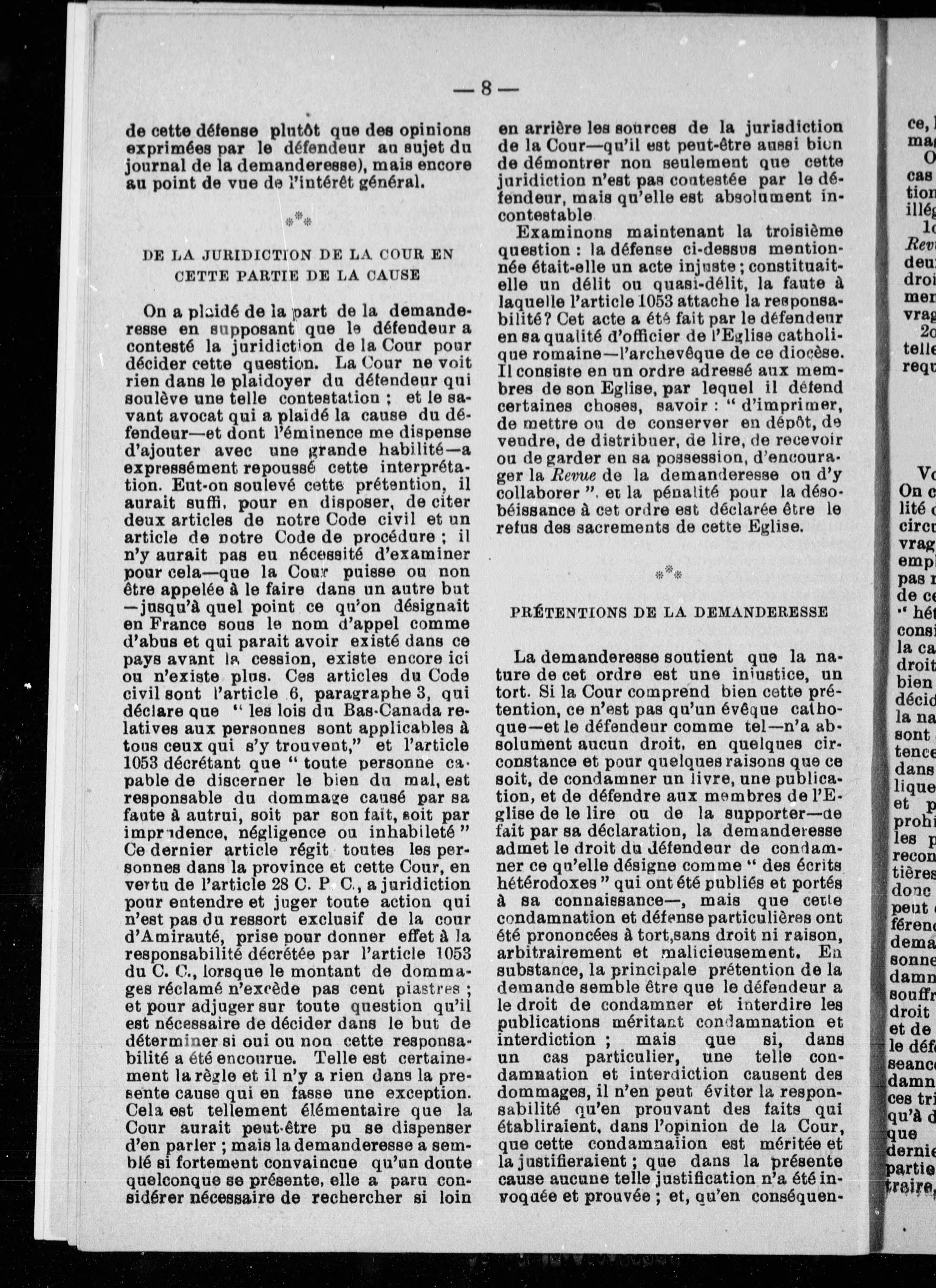 Les droits de l'évêque : la "Canada revue" vs Mgr Fabre : jugement de l'Honorable Juge Doherty (traduit de l'anglais). - Adresse bibliographique