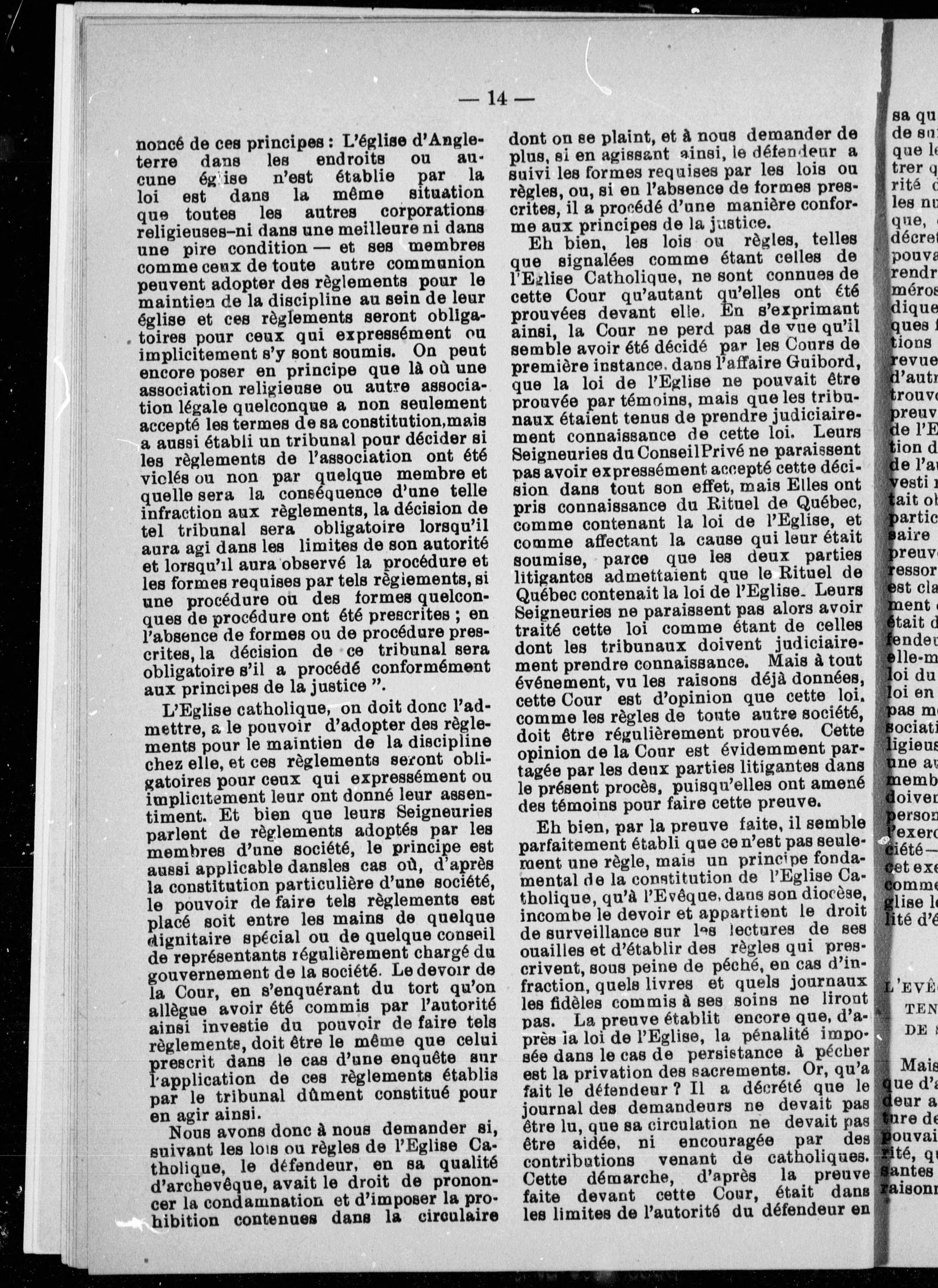 Les droits de l'évêque : la "Canada revue" vs Mgr Fabre : jugement de l'Honorable Juge Doherty (traduit de l'anglais).