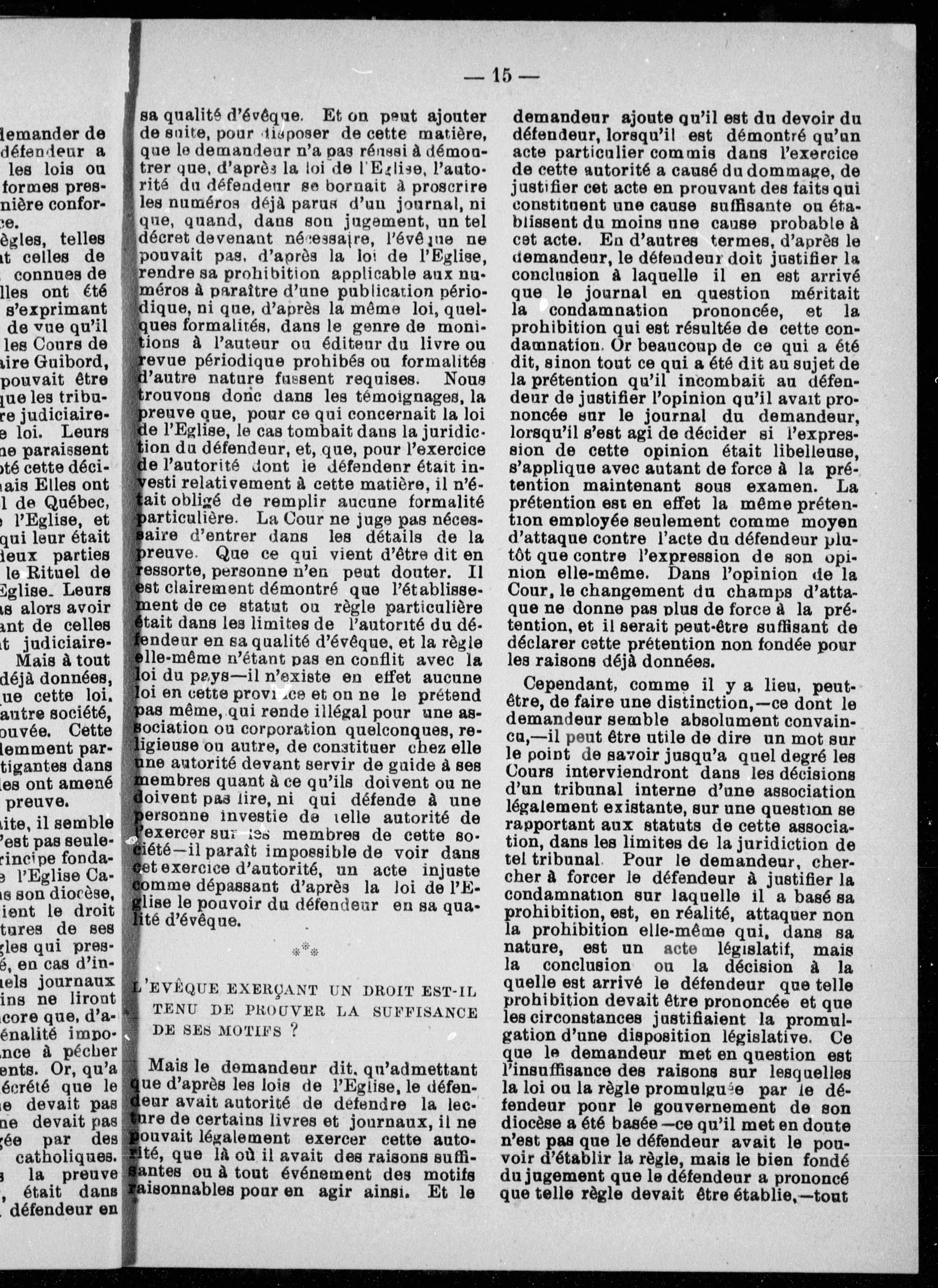Les droits de l'évêque : la "Canada revue" vs Mgr Fabre : jugement de l'Honorable Juge Doherty (traduit de l'anglais). - Adresse bibliographique