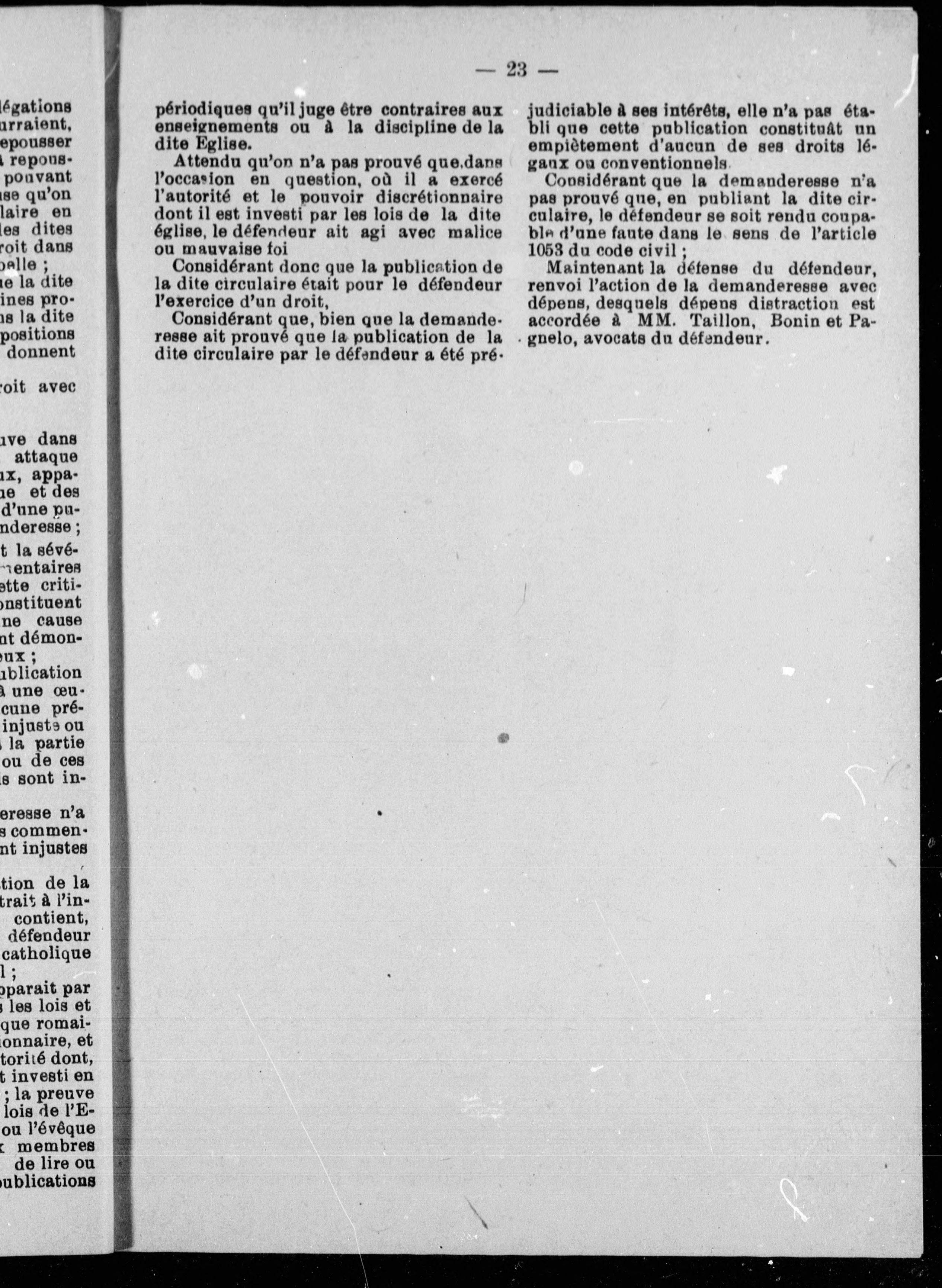 Les droits de l'évêque : la "Canada revue" vs Mgr Fabre : jugement de l'Honorable Juge Doherty (traduit de l'anglais). - Adresse bibliographique