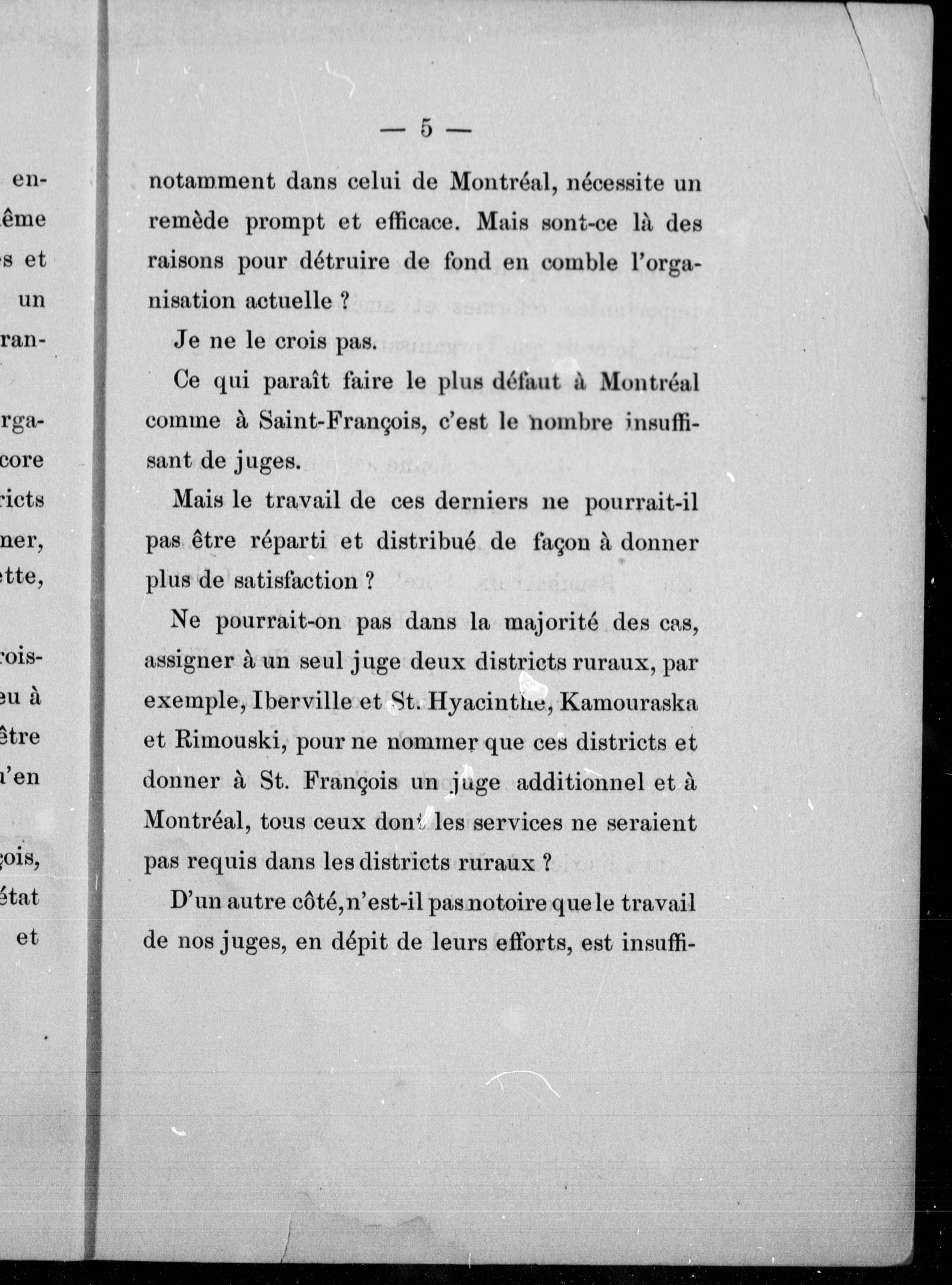 - Remarques et suggestions sur la réorganisation des tribunaux et amendements proposés au Code de procédure civile