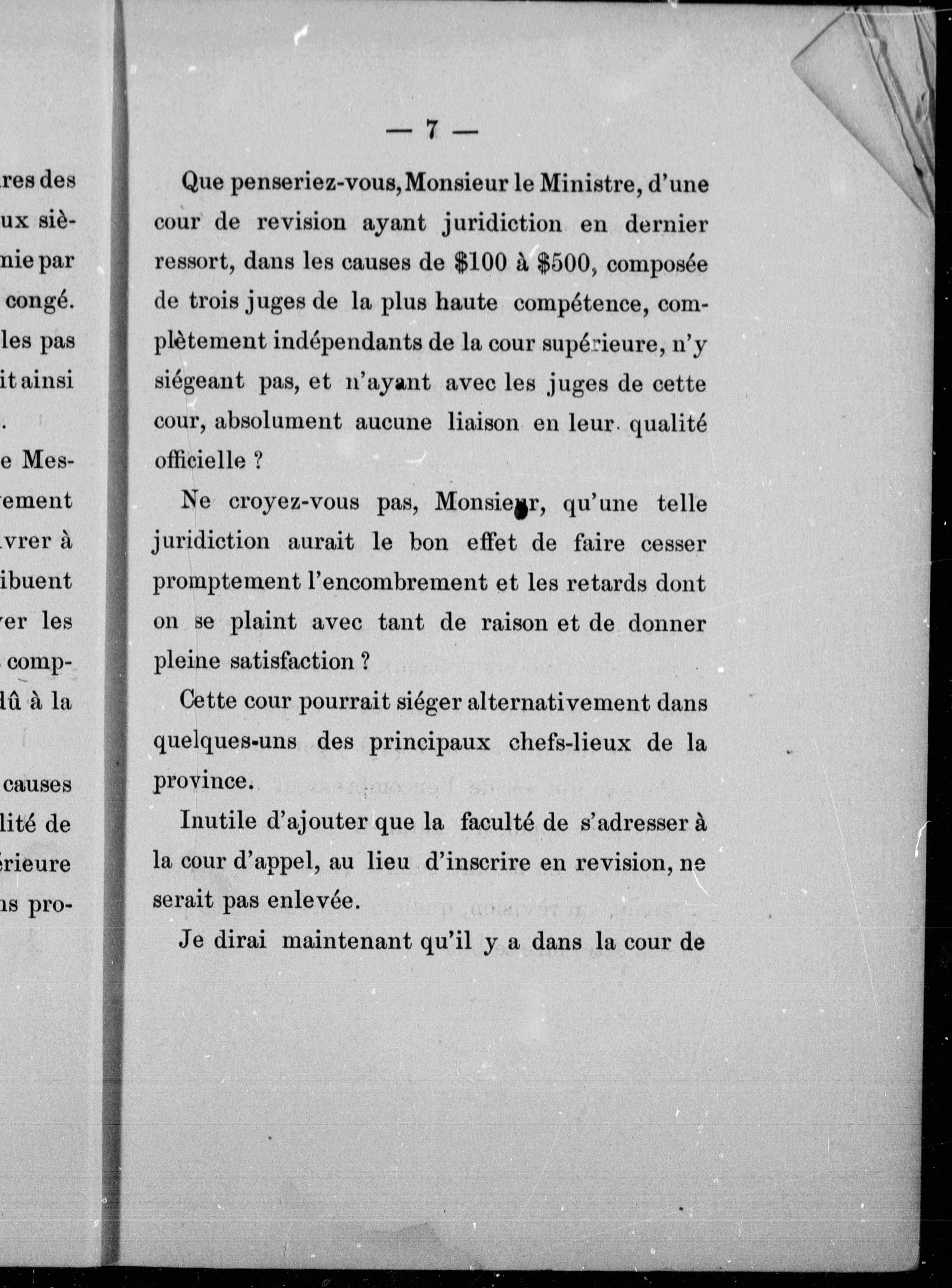 - Remarques et suggestions sur la réorganisation des tribunaux et amendements proposés au Code de procédure civile