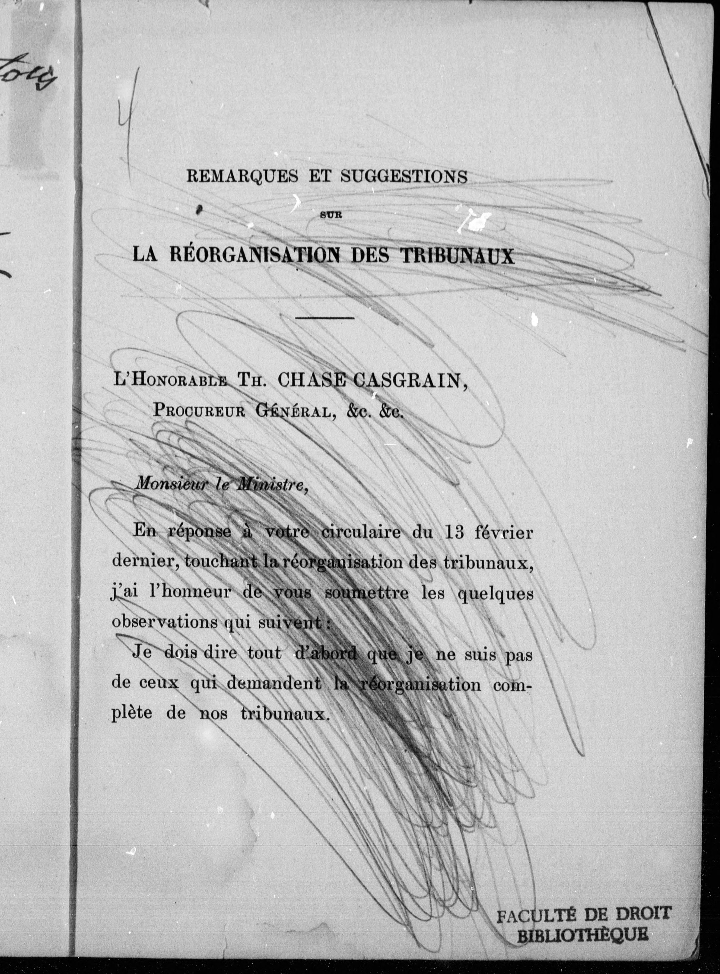 - Remarques et suggestions sur la réorganisation des tribunaux et amendements proposés au Code de procédure civile