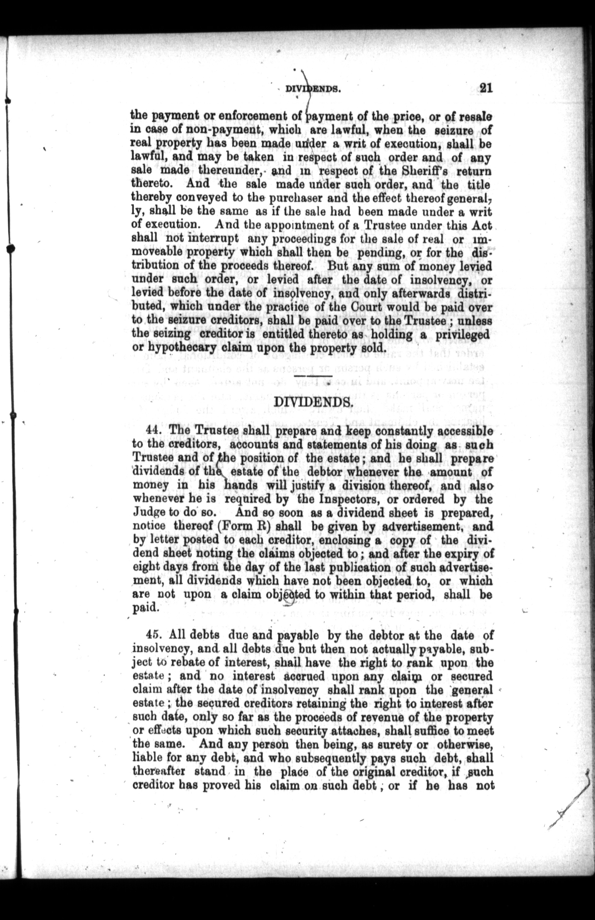 An Act to provide for the equitable distribution of insolvent debtors' estates /