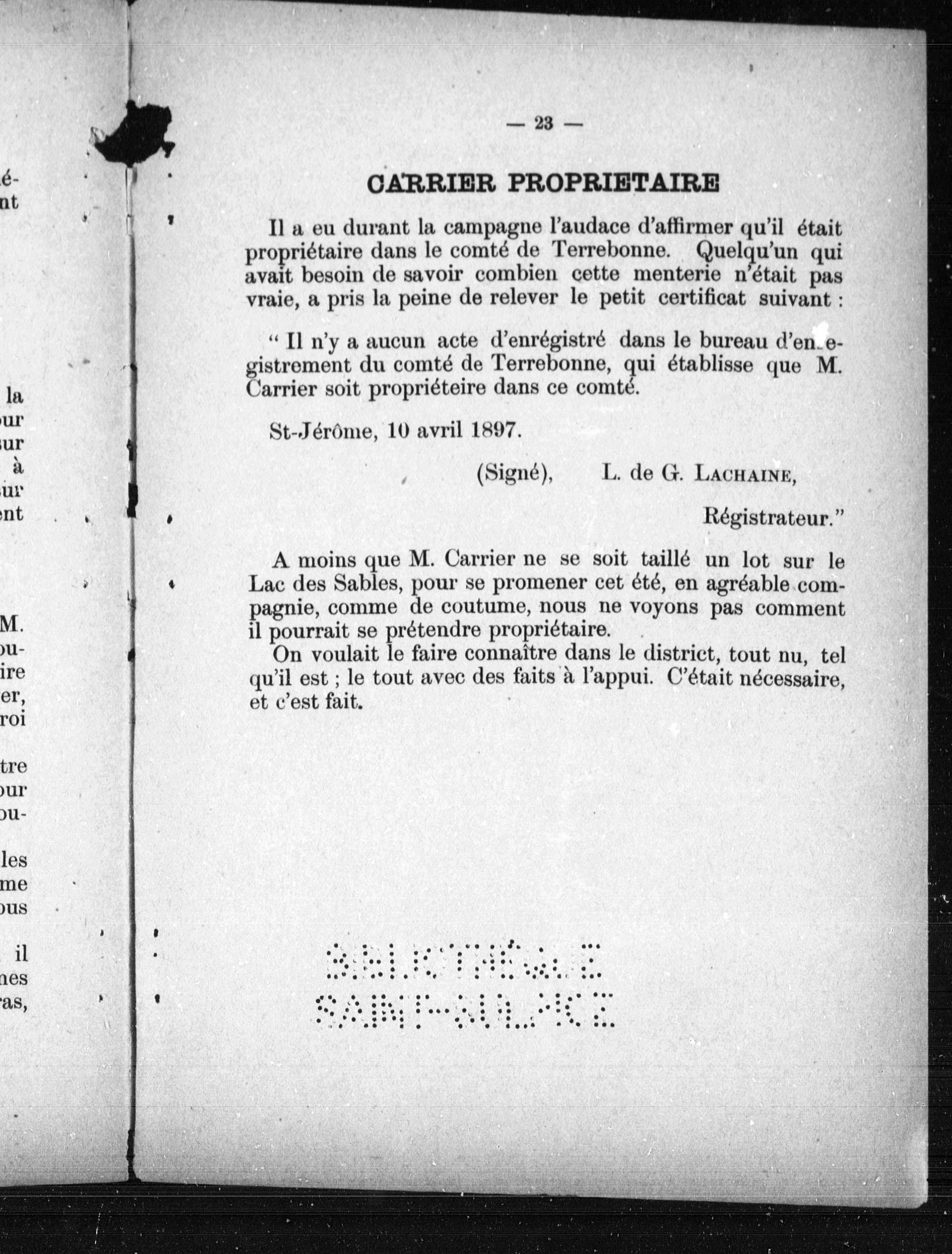 - Le Candidat de M. Marchand à Terrebonne : Achille Carrier, un oiseau de passage : quel est-il? d'ou est-il? ou va-t-il? qu' a-t-il fait?.