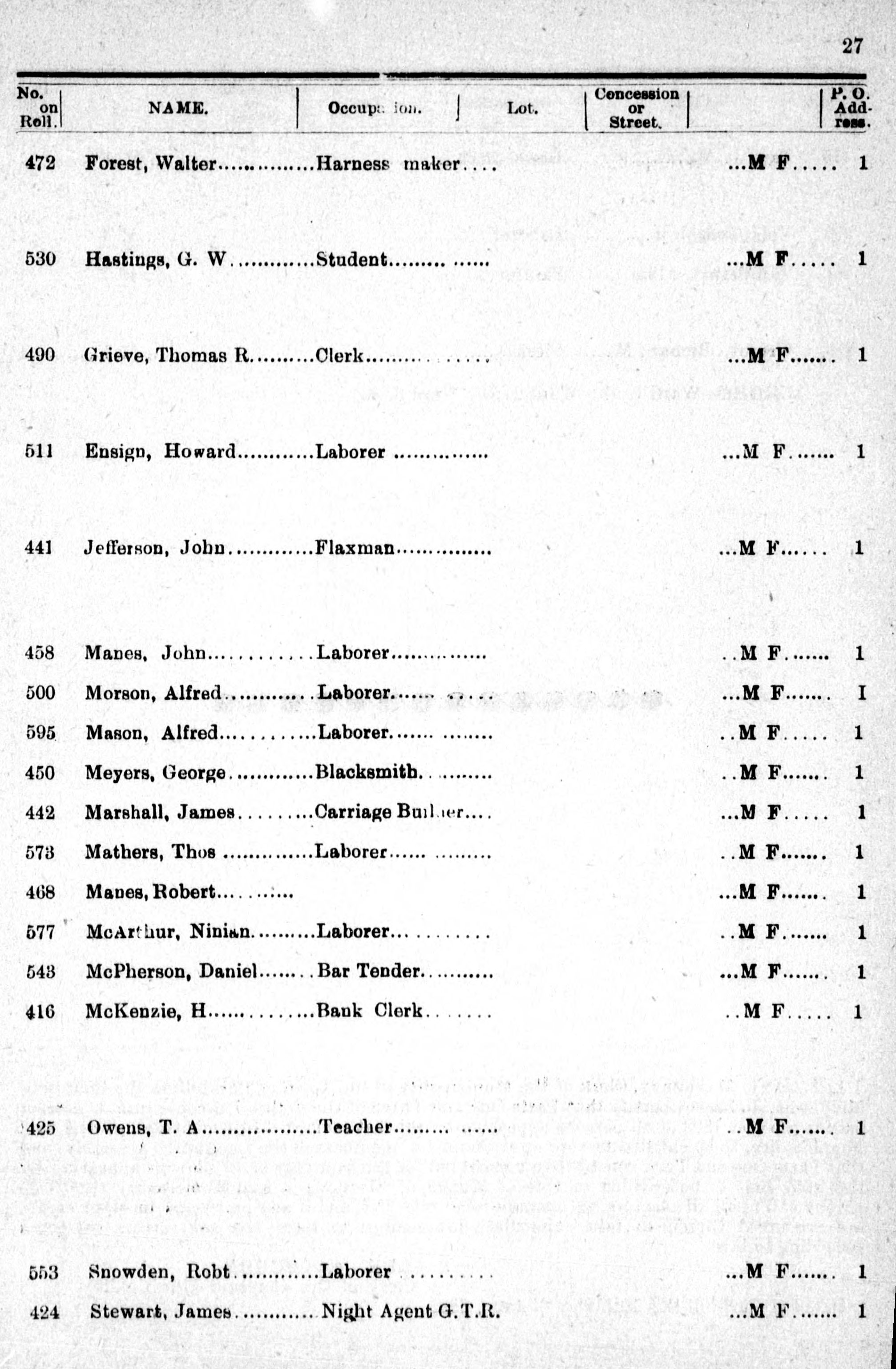 Parkhill (Ont.) -- Listes électorales. - Document original
