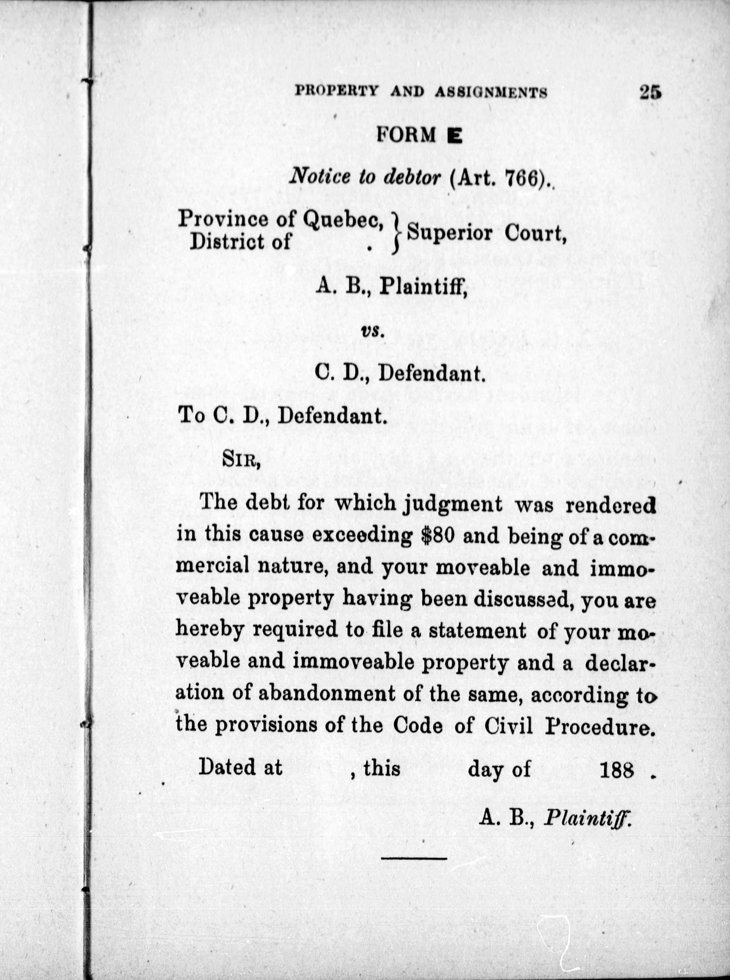The Law of abandonment of property and assignments in the province of Quebec : with forms