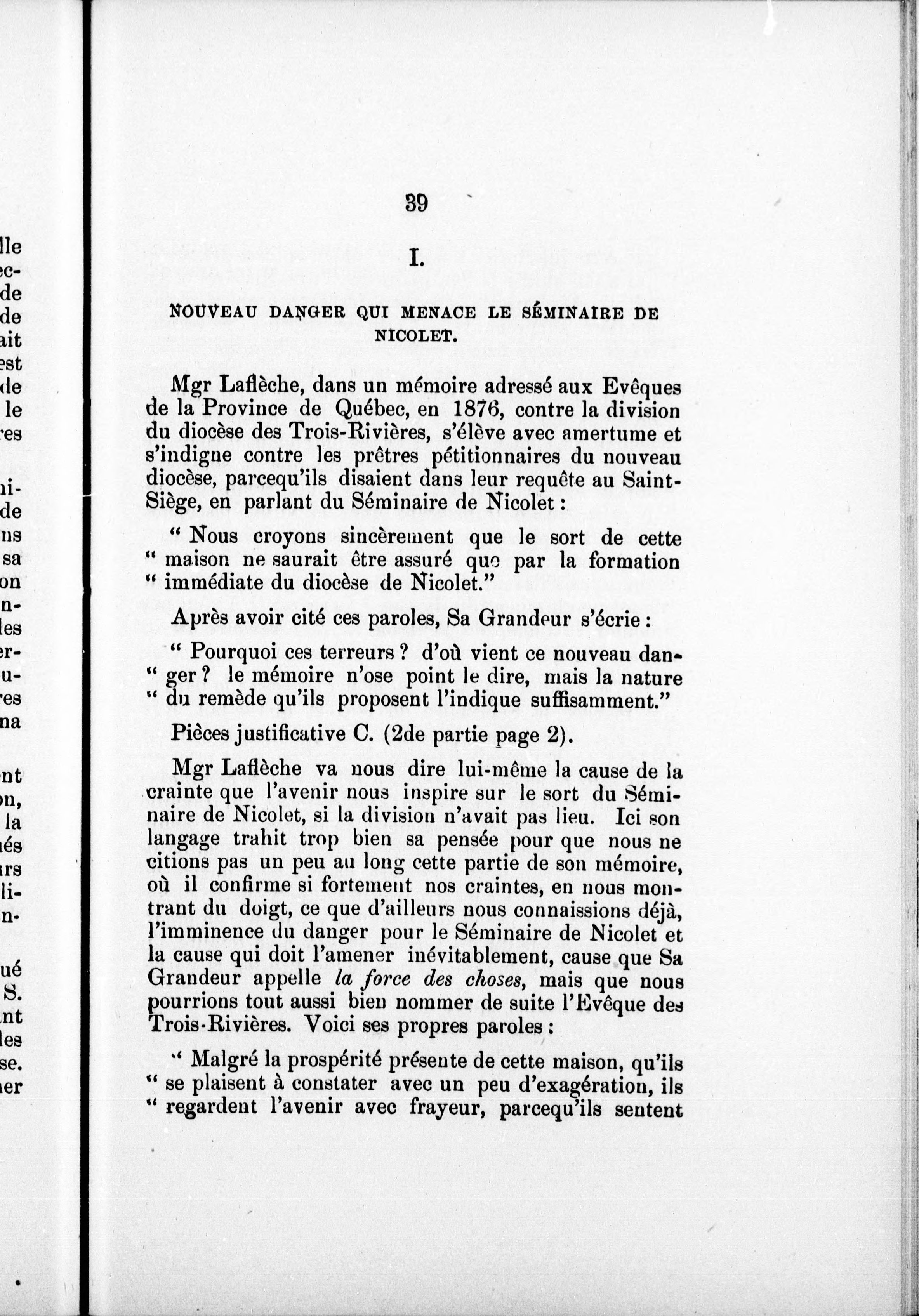 Résumé des mémoires en faveur de la division du diocèse des Trois-Rivières : première partie (confidentiel)