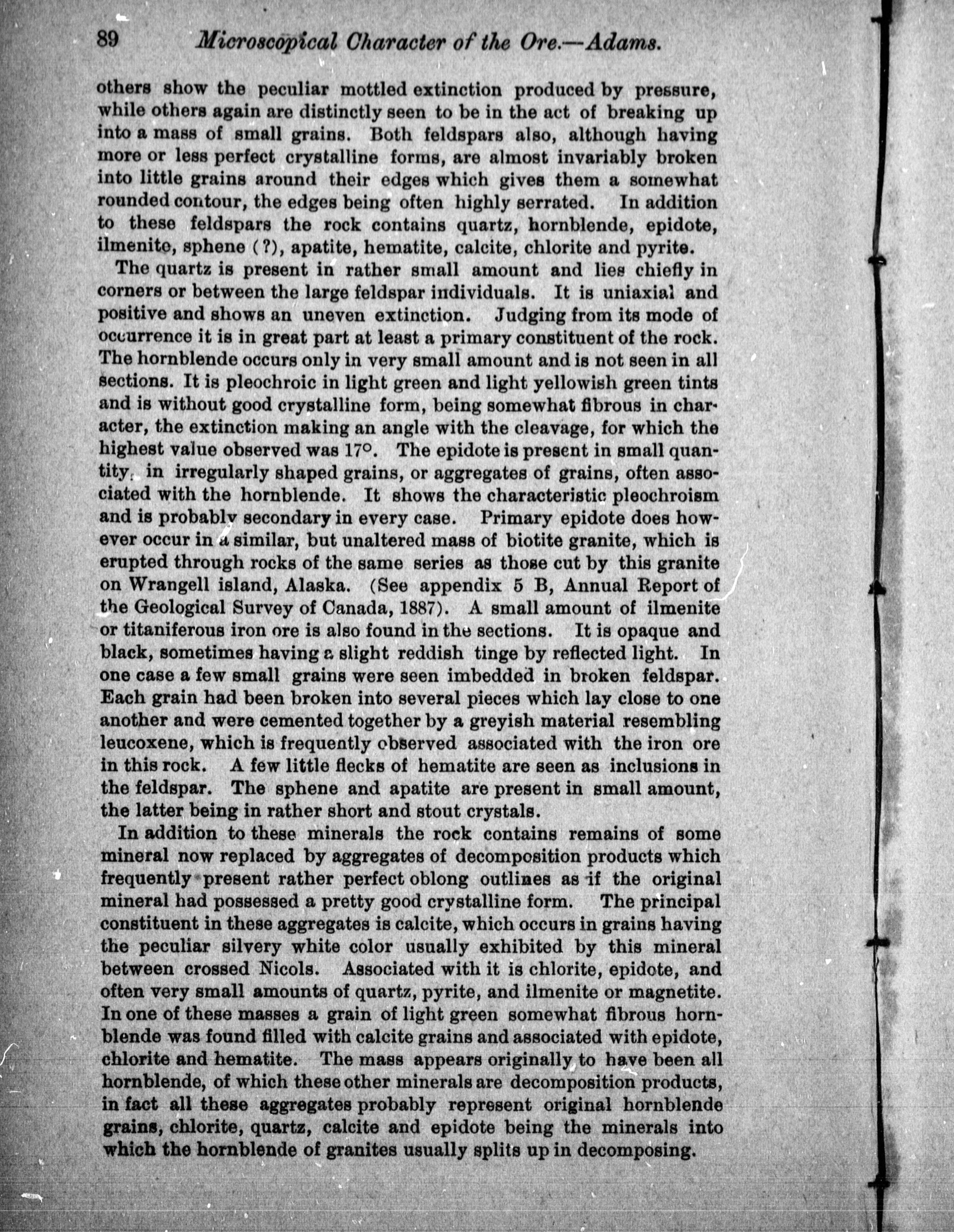 Notes on the ore-deposit of the Treadwell Mine, Alaska / by George M. Dawson. On the microscopical character of the ore of the Treadwell Mine, Alaska / by Frank D. Adams.