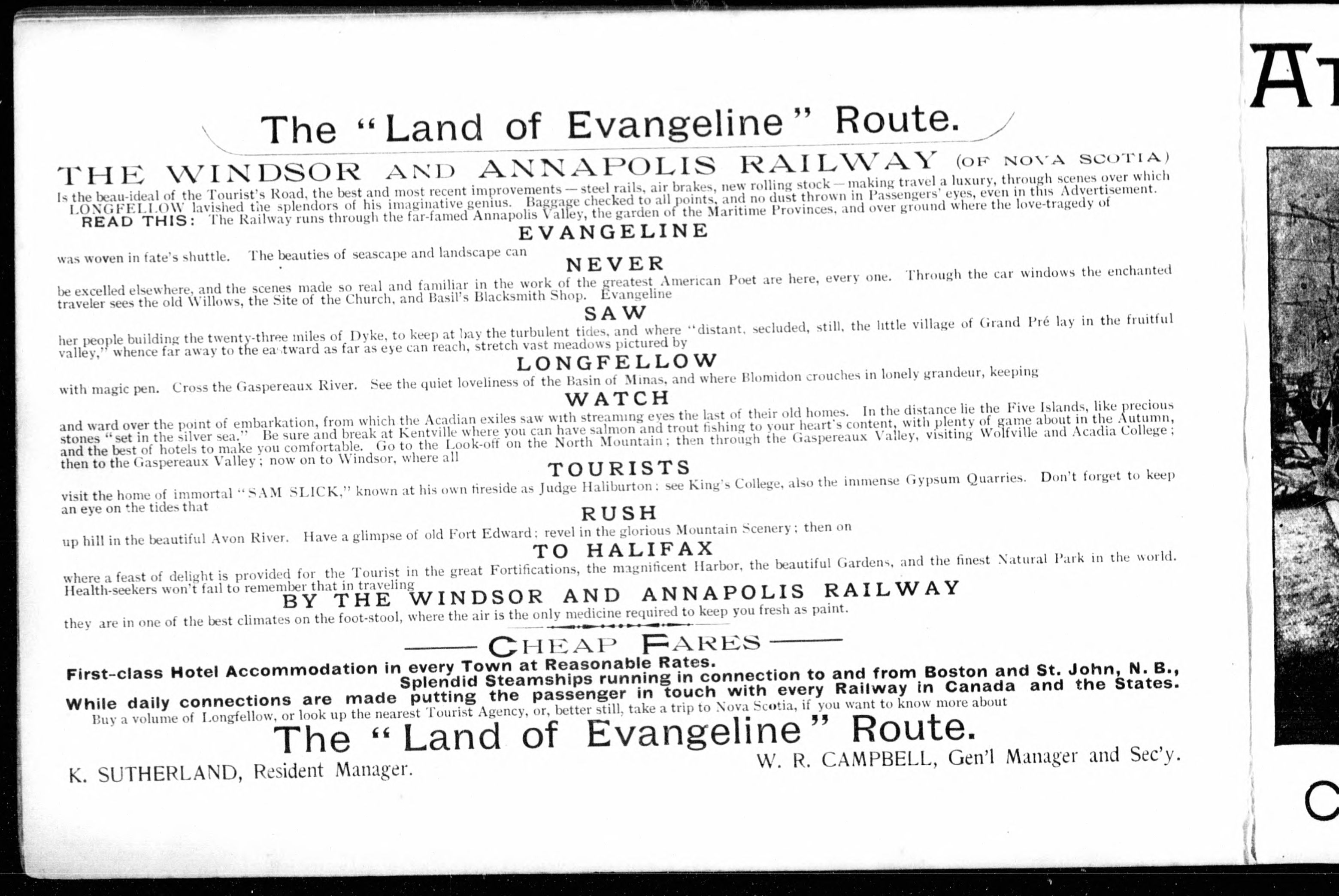 - Nova Scotia, the land of Evangeline and the tourist's paradise : reached in 12 to 17 hours by the Yarmouth Steamship Co. (Limited)