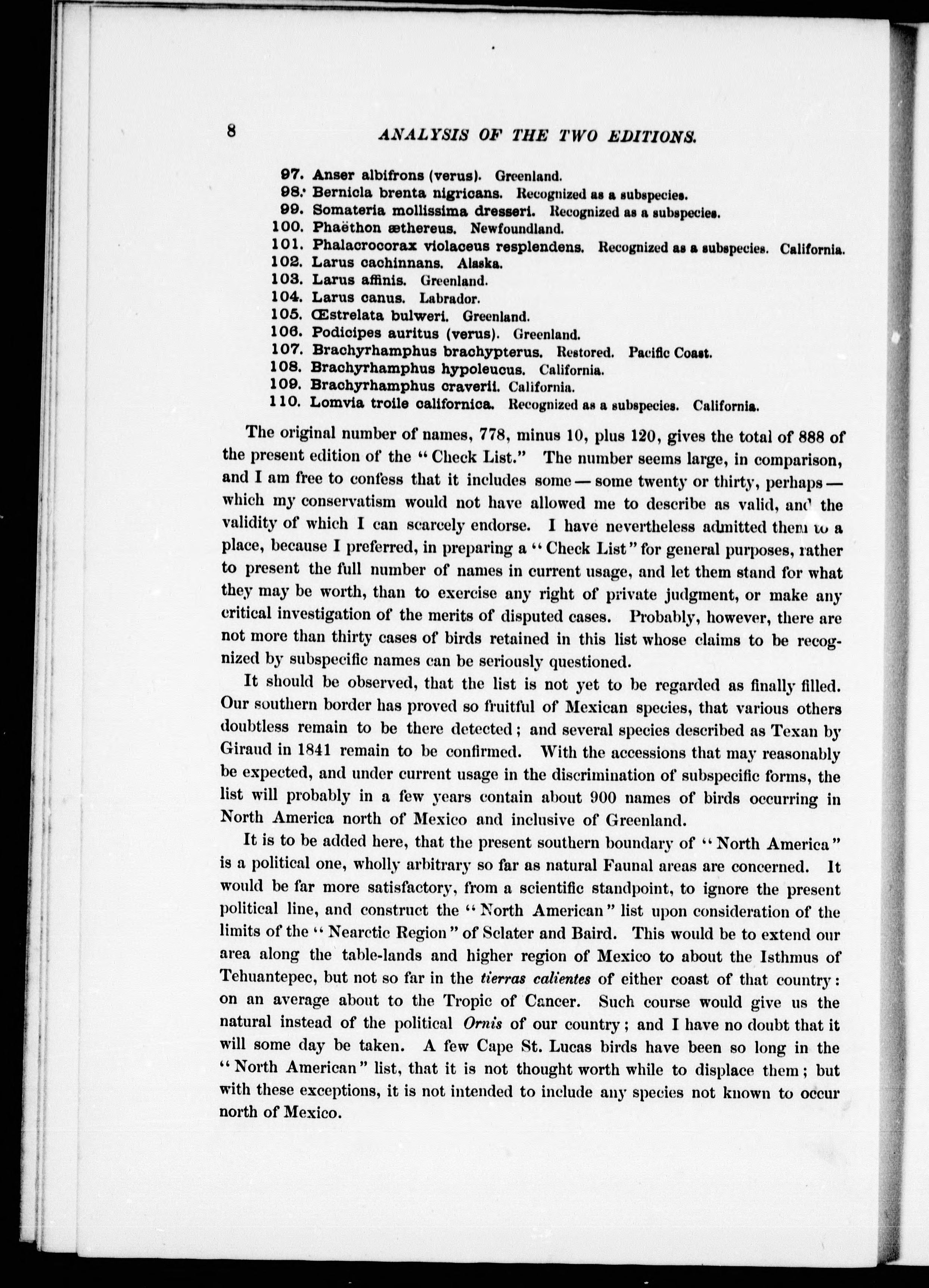 "With a dictionary of the etymology, orthography and orthoepy of the scientific names, the concordance of previous lists and a catalogue of his ornithological publications."
