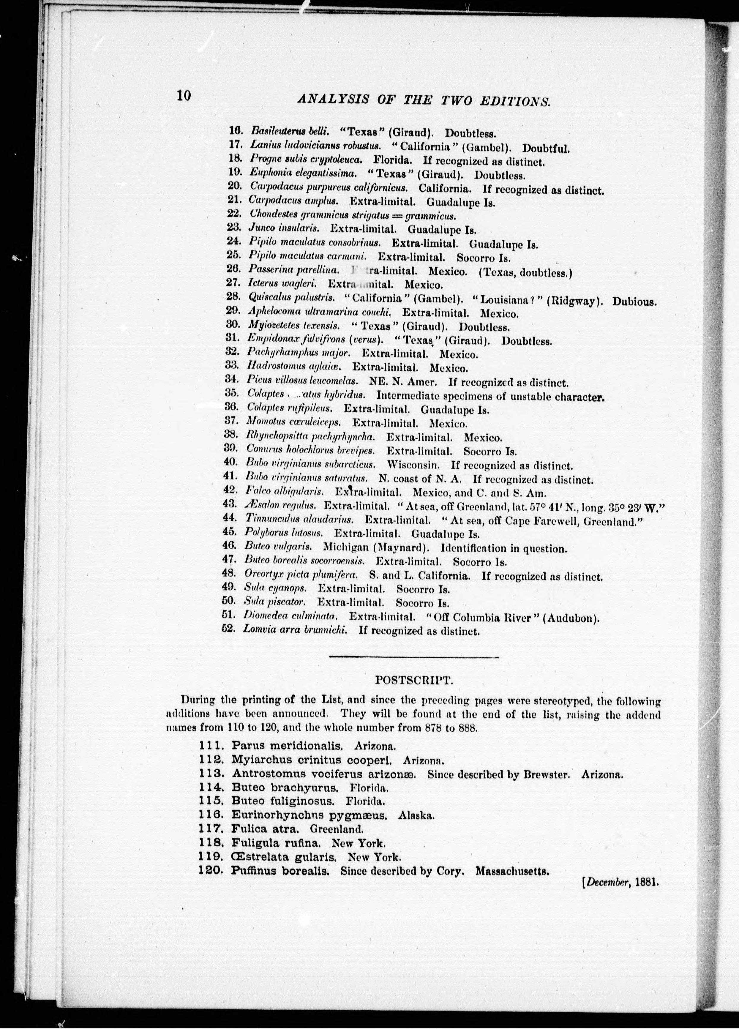 "With a dictionary of the etymology, orthography and orthoepy of the scientific names, the concordance of previous lists and a catalogue of his ornithological publications."