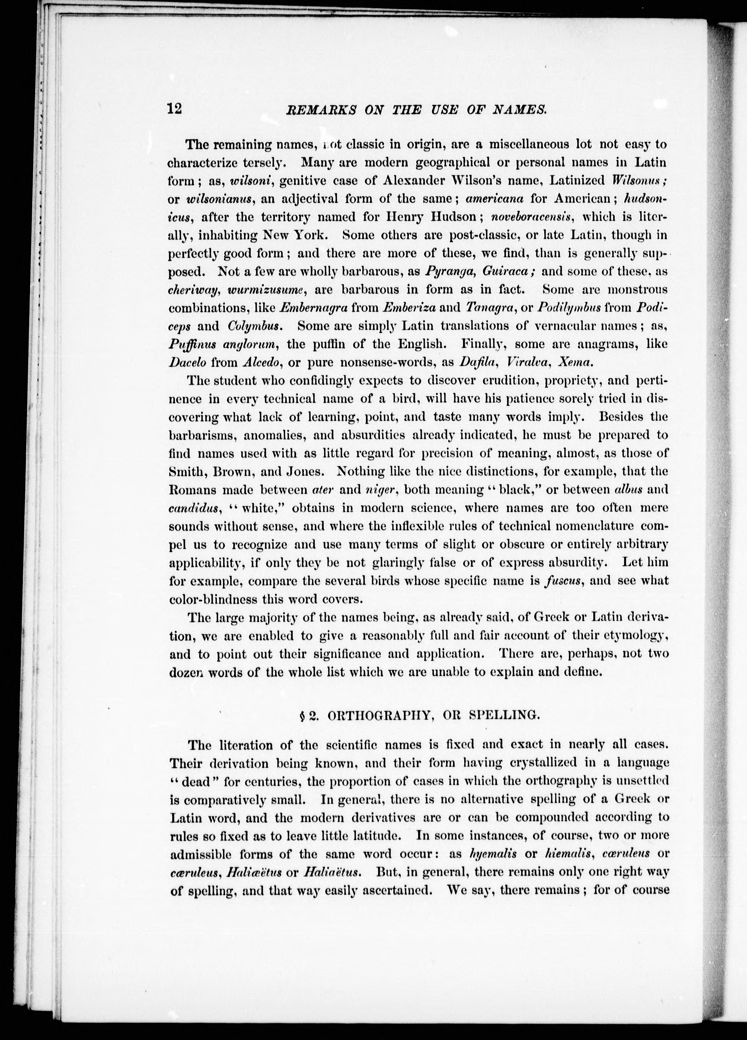 "With a dictionary of the etymology, orthography and orthoepy of the scientific names, the concordance of previous lists and a catalogue of his ornithological publications."
