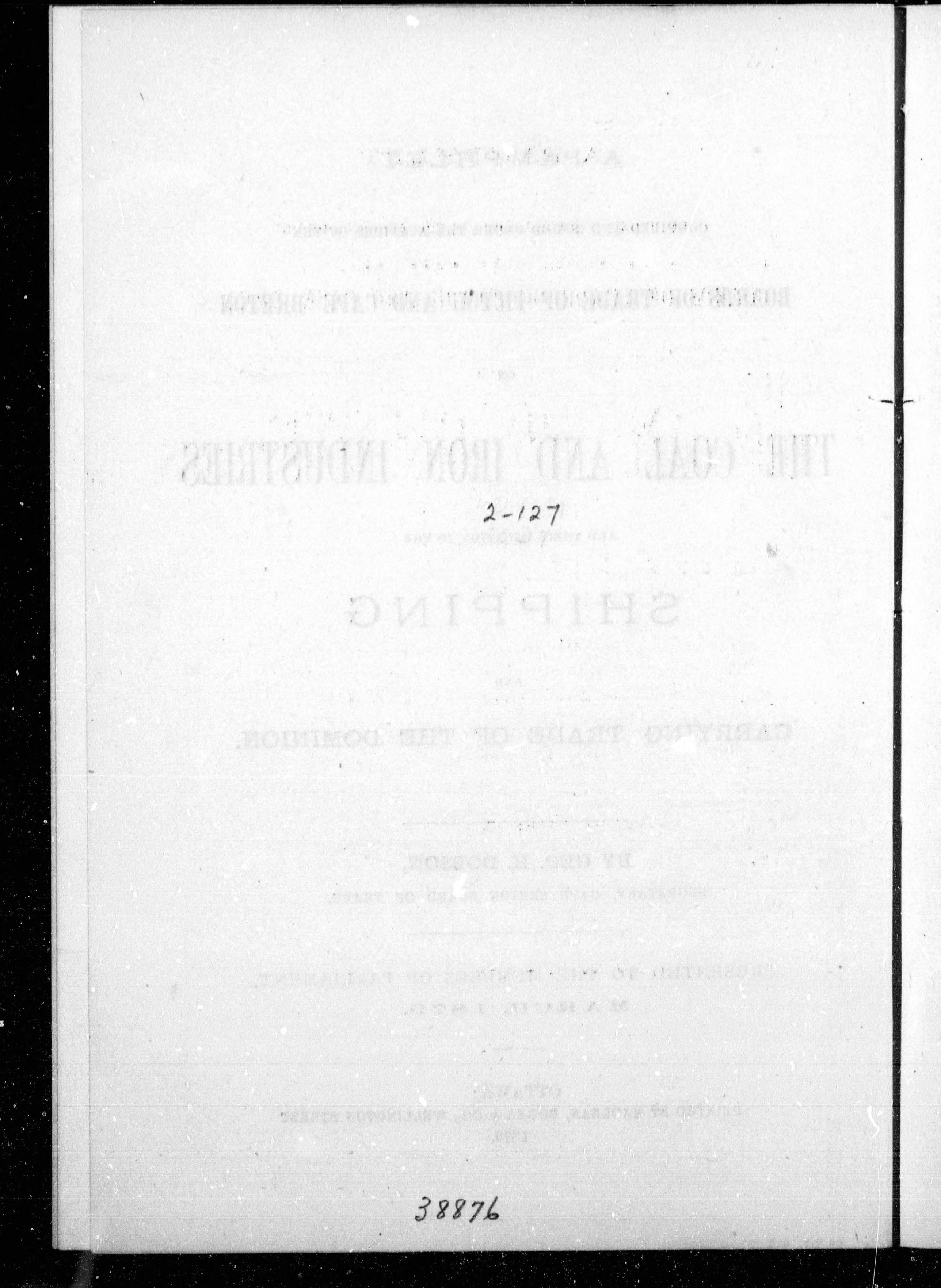 - A pamphlet compiled and issued under the auspices of the Boards of Trade of Pictou and Cape Breton on the coal and iron industries and their relation to the shipping and carrying trade of the Dominion