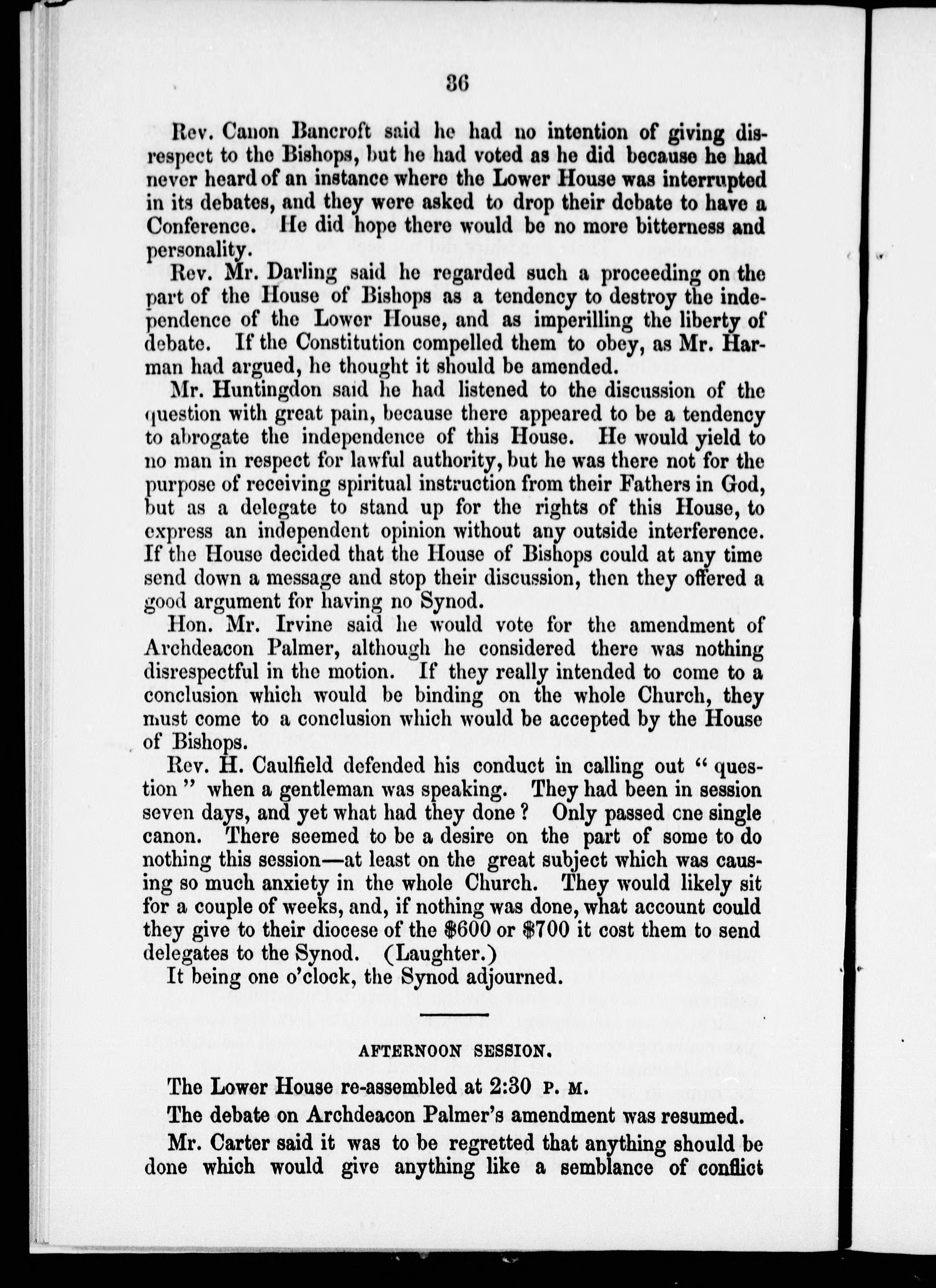 The debates on ritualism in the Provincial Synod of the Church of England and Ireland : held at Montreal September 9th and following 9 days, 1868 : also, the sermon of the Rev. Canon Balch, D. D., preached in the Cathedral, on the occasion of the death of the most Rev. Lord Bishop of Montreal and Metropolitan, and a report of the funeral obsequies, &c, &c,