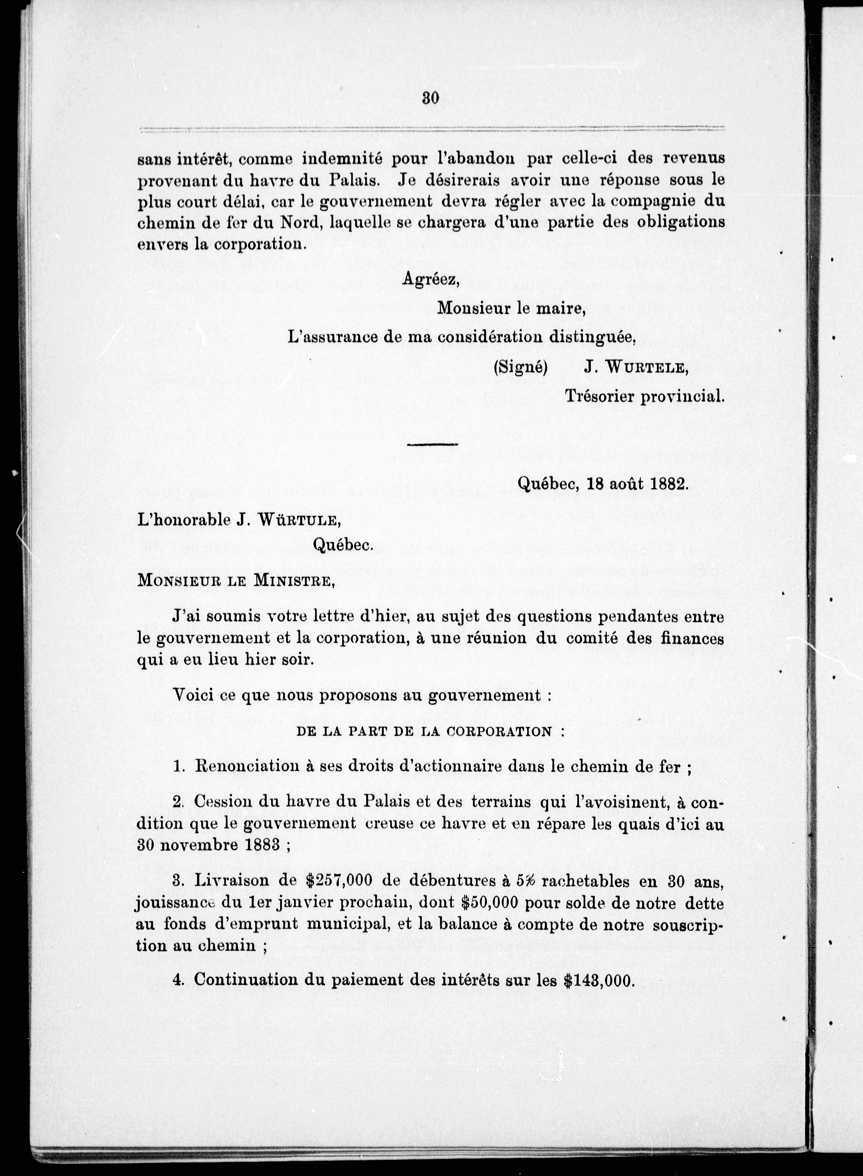 - Amendements à la Charte de la Cité : et correspondance et contrats entre le gouvernement, la cité de Québec et la compagnie du Chemin de fer du Nord, relativement au règlement concernant la souscription de la ville et au règlement avec la compagnie.