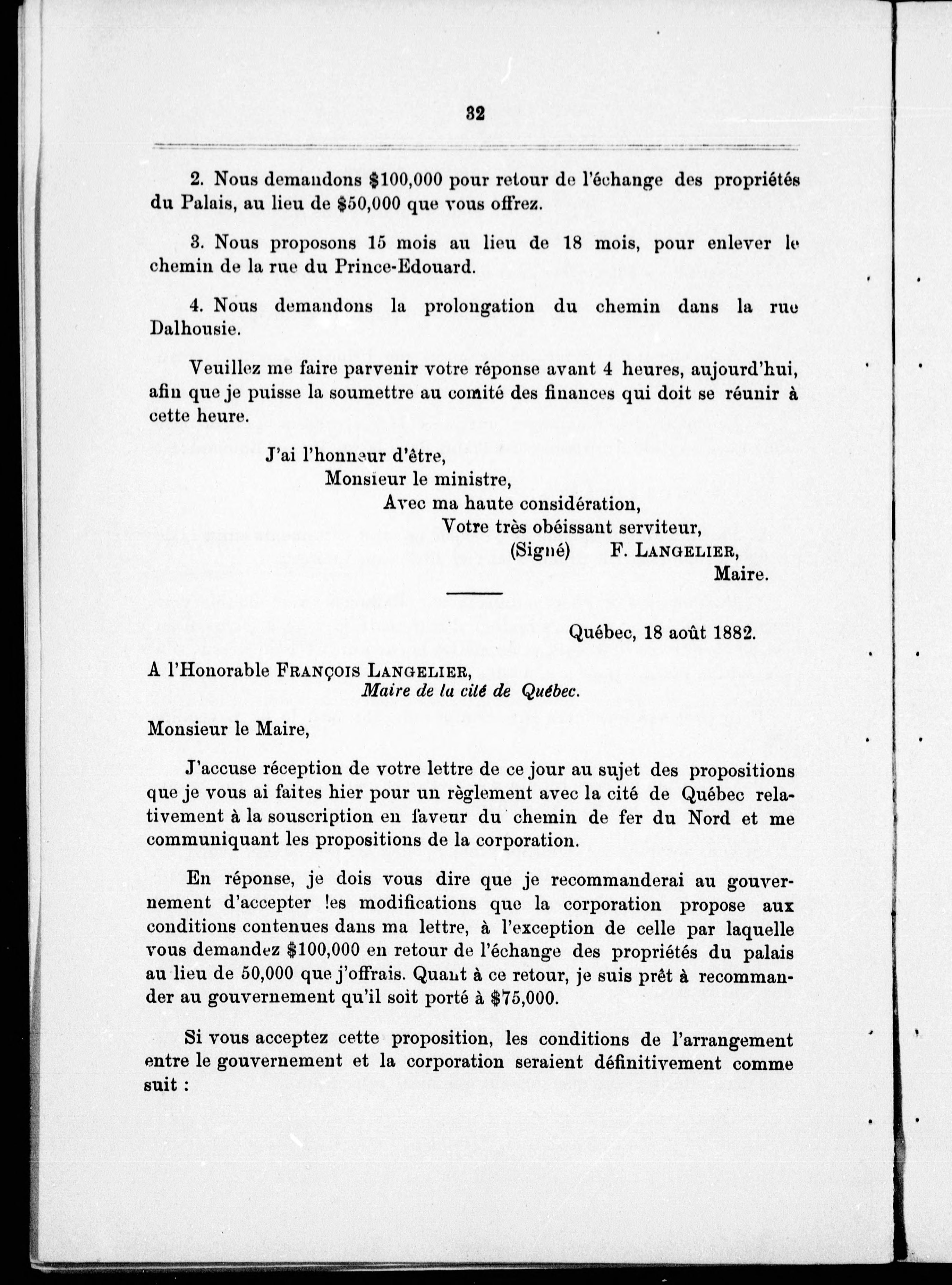 - Amendements à la Charte de la Cité : et correspondance et contrats entre le gouvernement, la cité de Québec et la compagnie du Chemin de fer du Nord, relativement au règlement concernant la souscription de la ville et au règlement avec la compagnie.