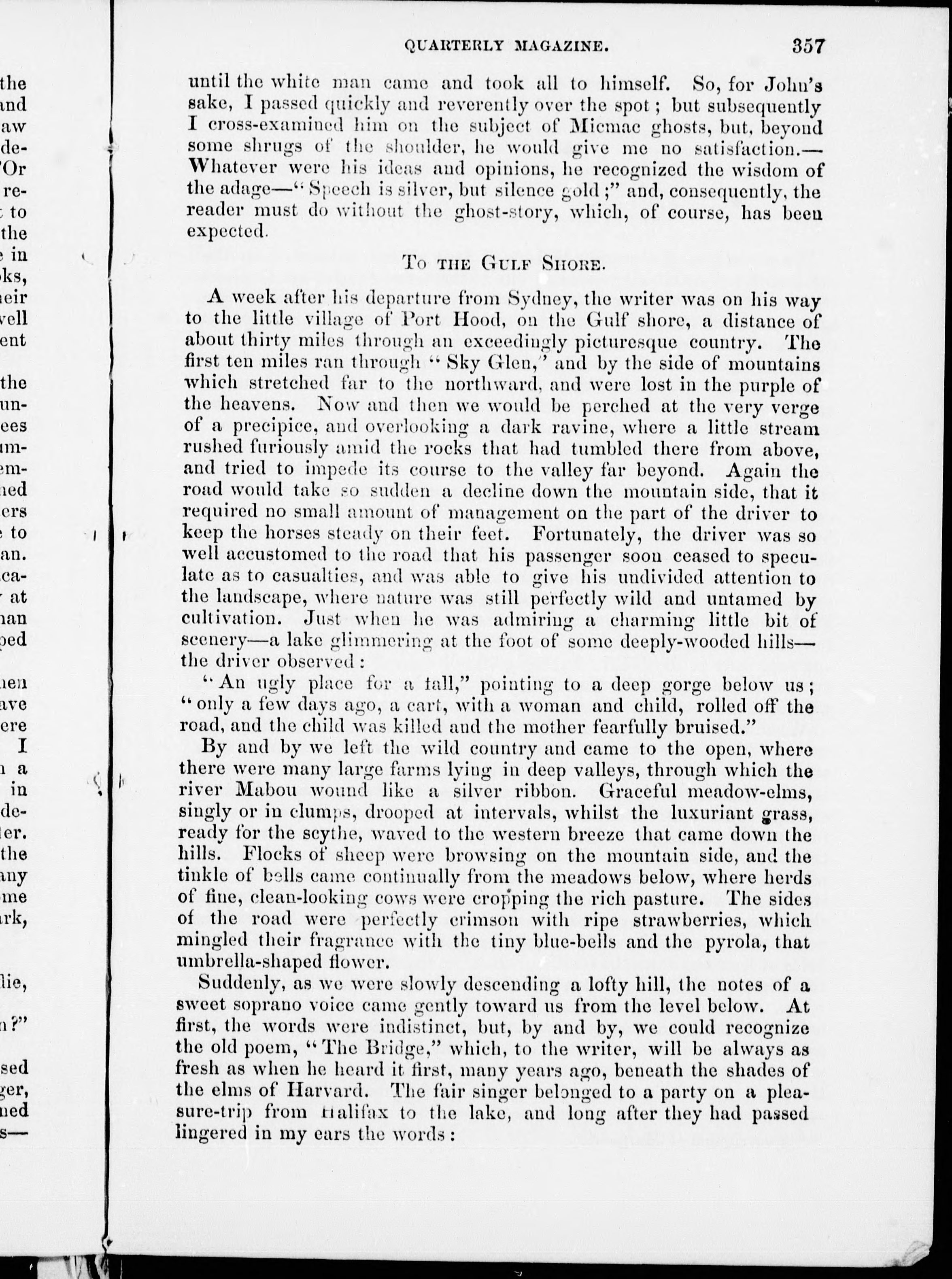 At head of title: Stewart's Literary Quarterly Magazine, devoted to light and entertaining literature. George Stewart,Jr., Editor and Proprietor. Vol. III, numbers 4, Saint John, N.B., January, 1870.