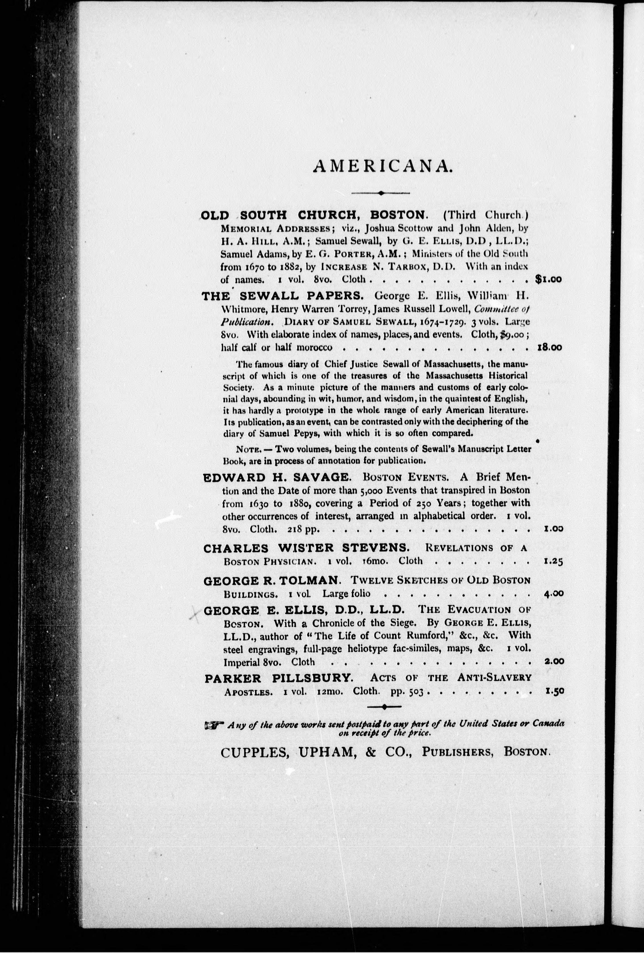 Boston : Cupples, Upham, 1886.; 184 images, 175 avec recherche en texte intégral