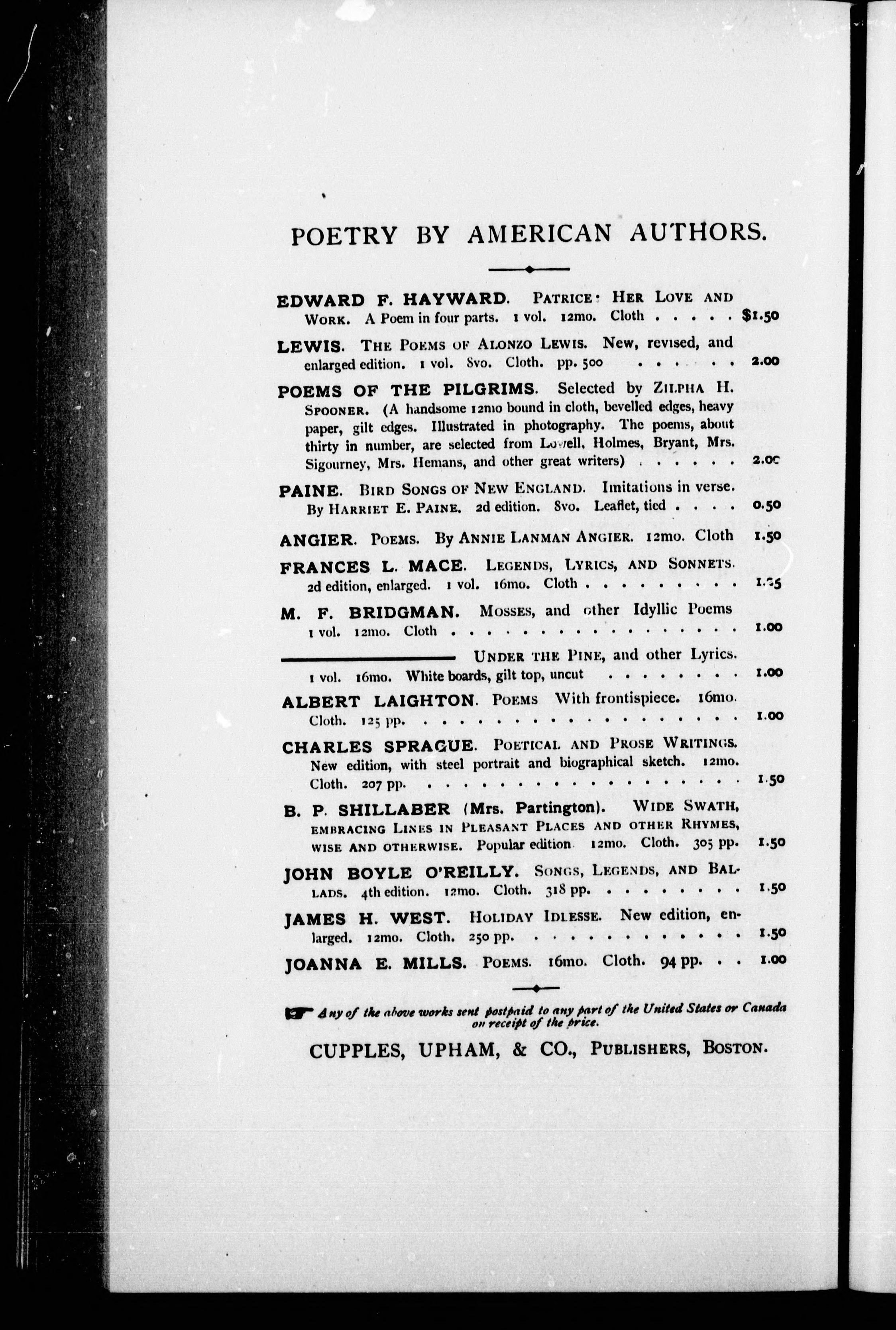 Boston : Cupples, Upham, 1886.; 184 images, 175 avec recherche en texte intégral