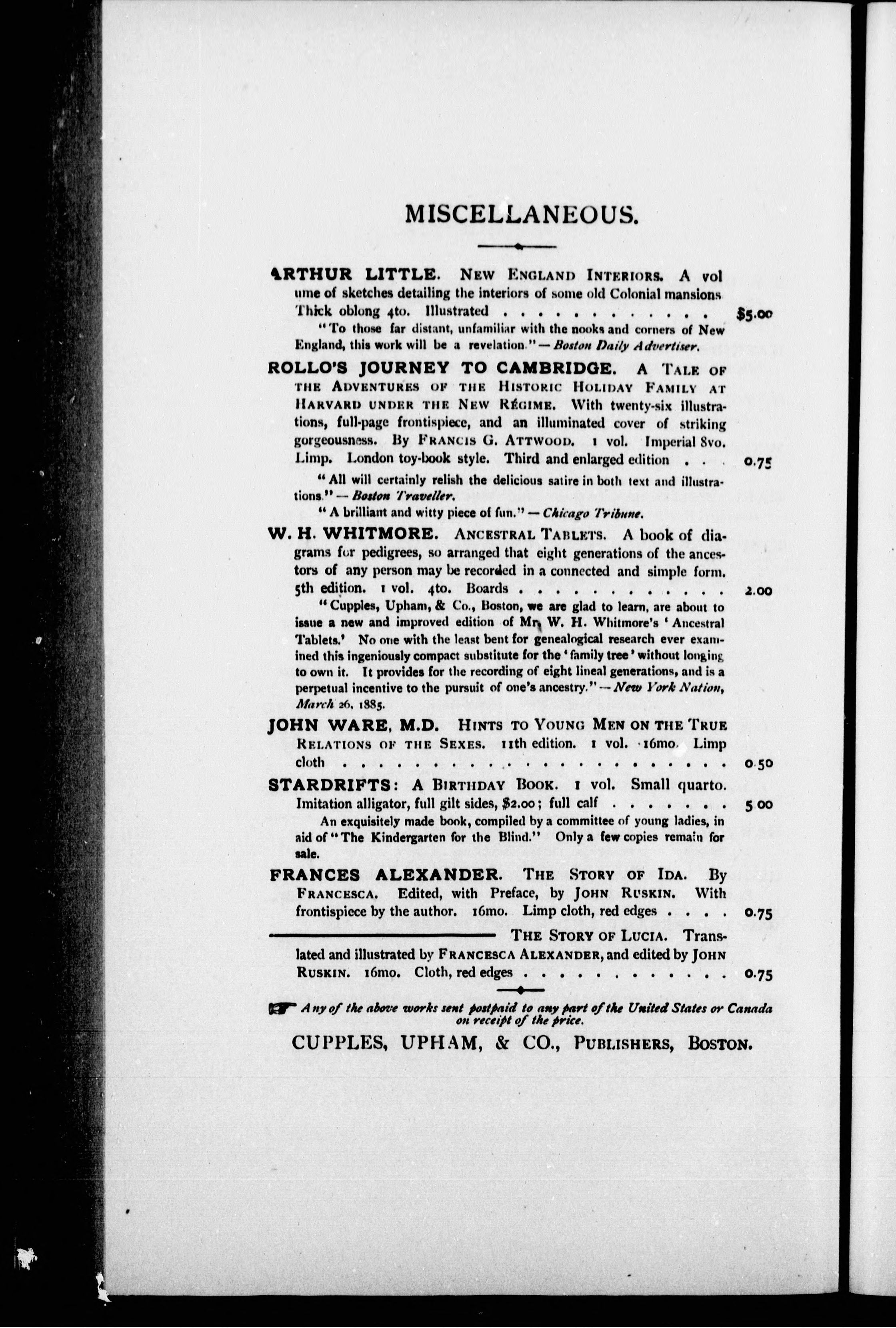 Boston : Cupples, Upham, 1886.; 184 images, 175 avec recherche en texte intégral