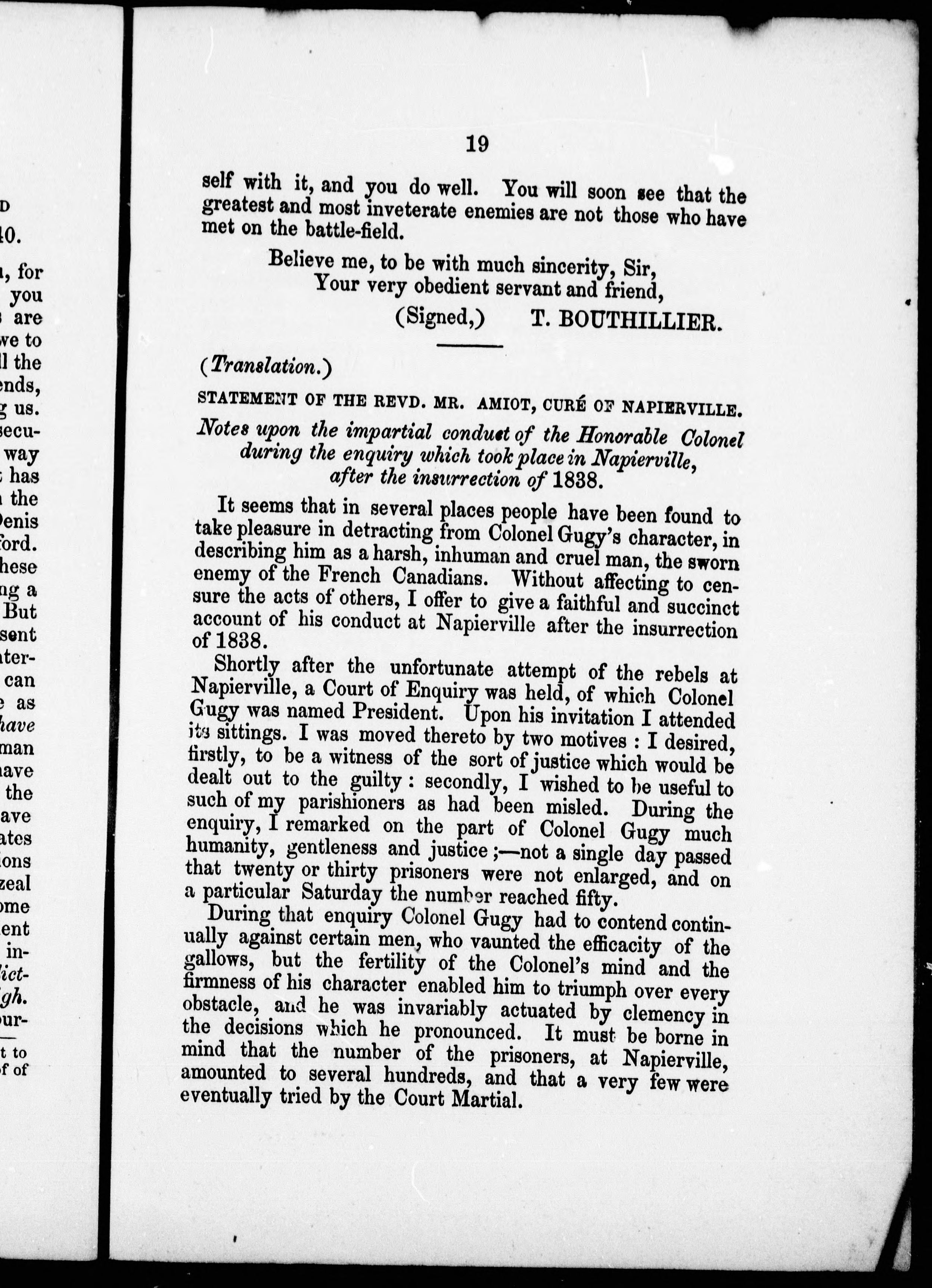 Letters and statements in defence of Col. Gugy, written by himself and others.