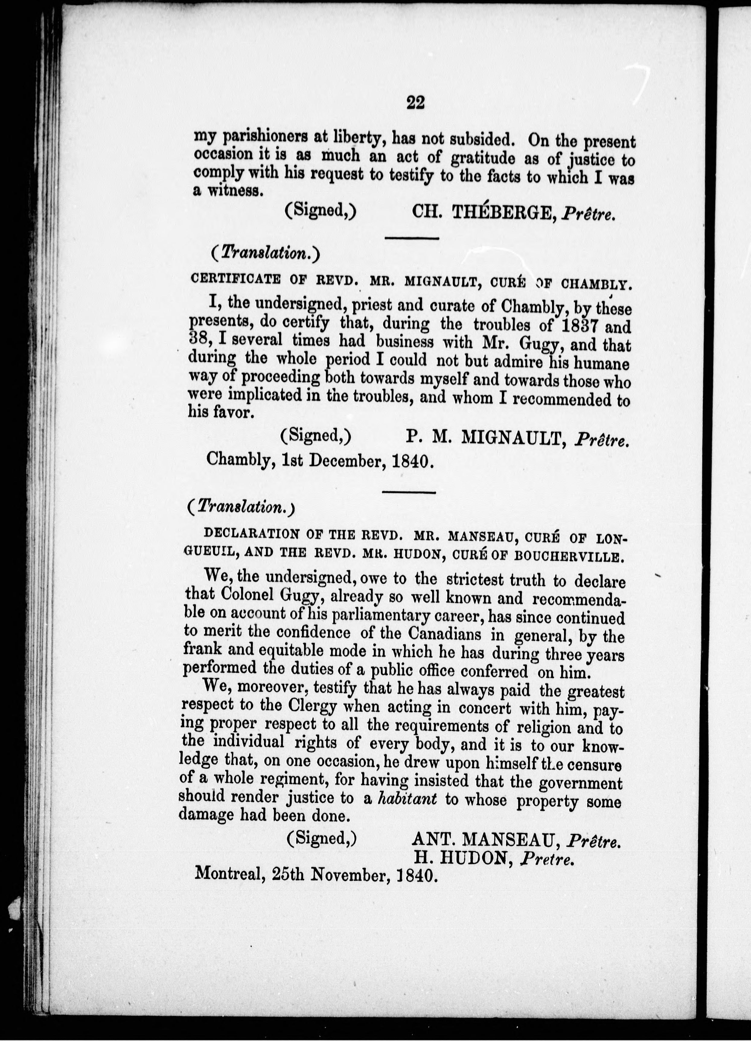 Letters and statements in defence of Col. Gugy, written by himself and others.