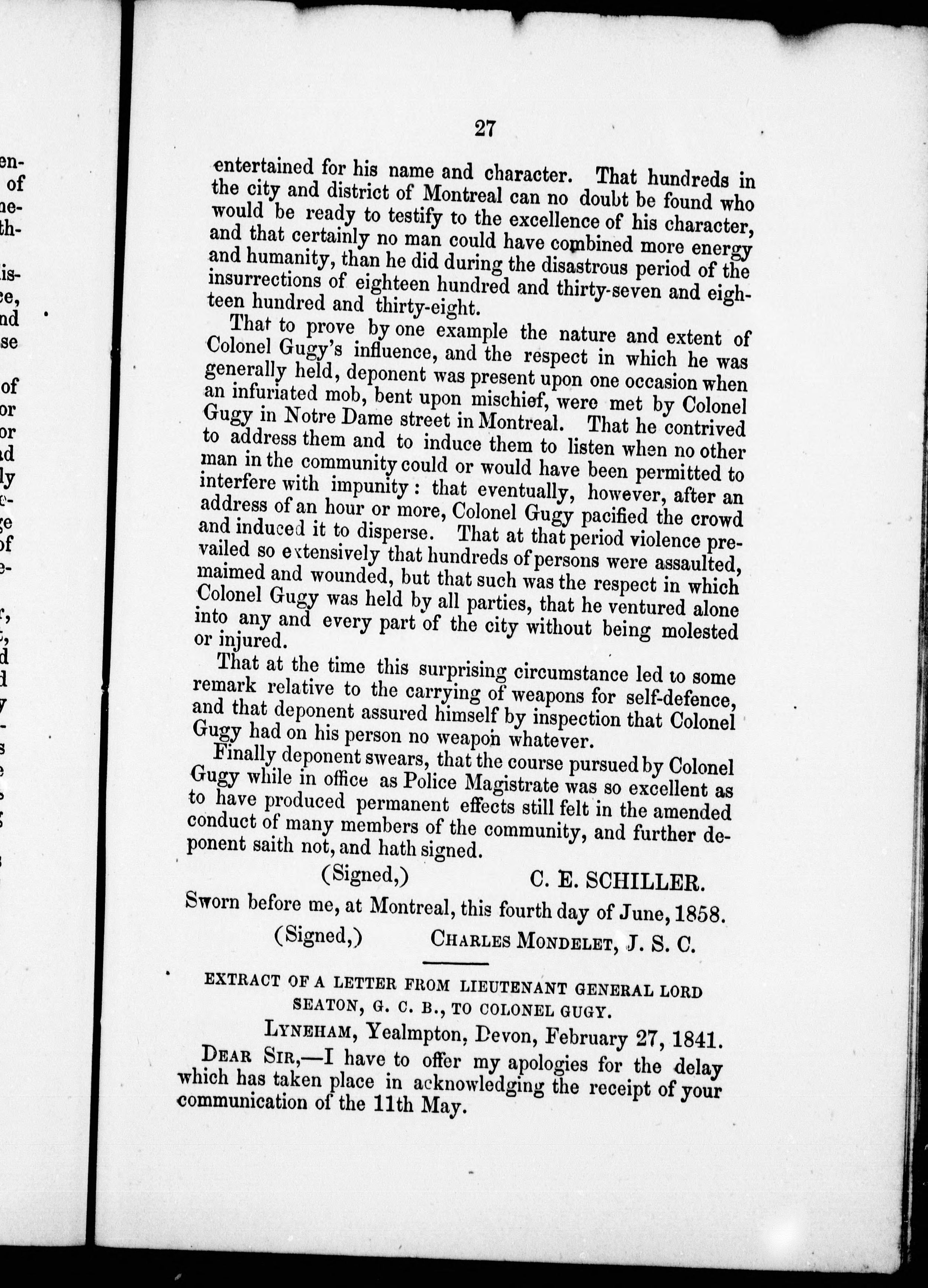 Letters and statements in defence of Col. Gugy, written by himself and others.