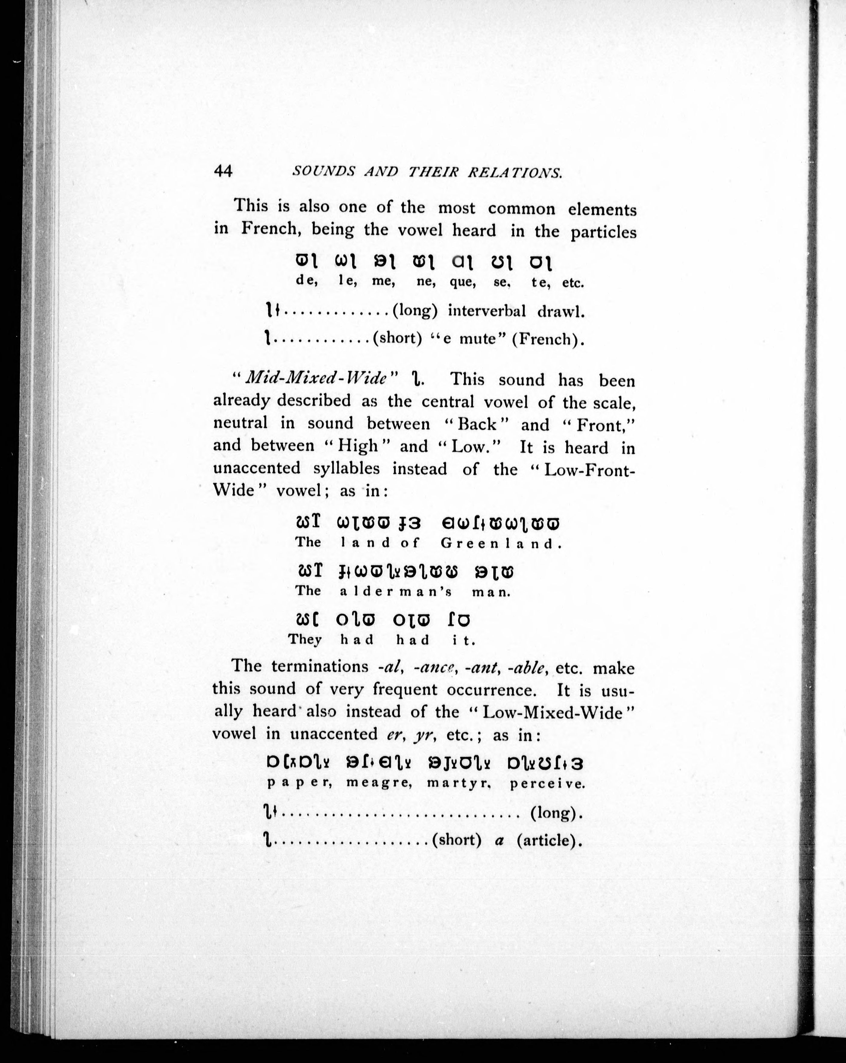 Sounds and their relations : a complete manual of universal alphabetics ; illustrated by means of visible speech and exhibiting the prononciation of English, in various styles and of other languages and dialects
