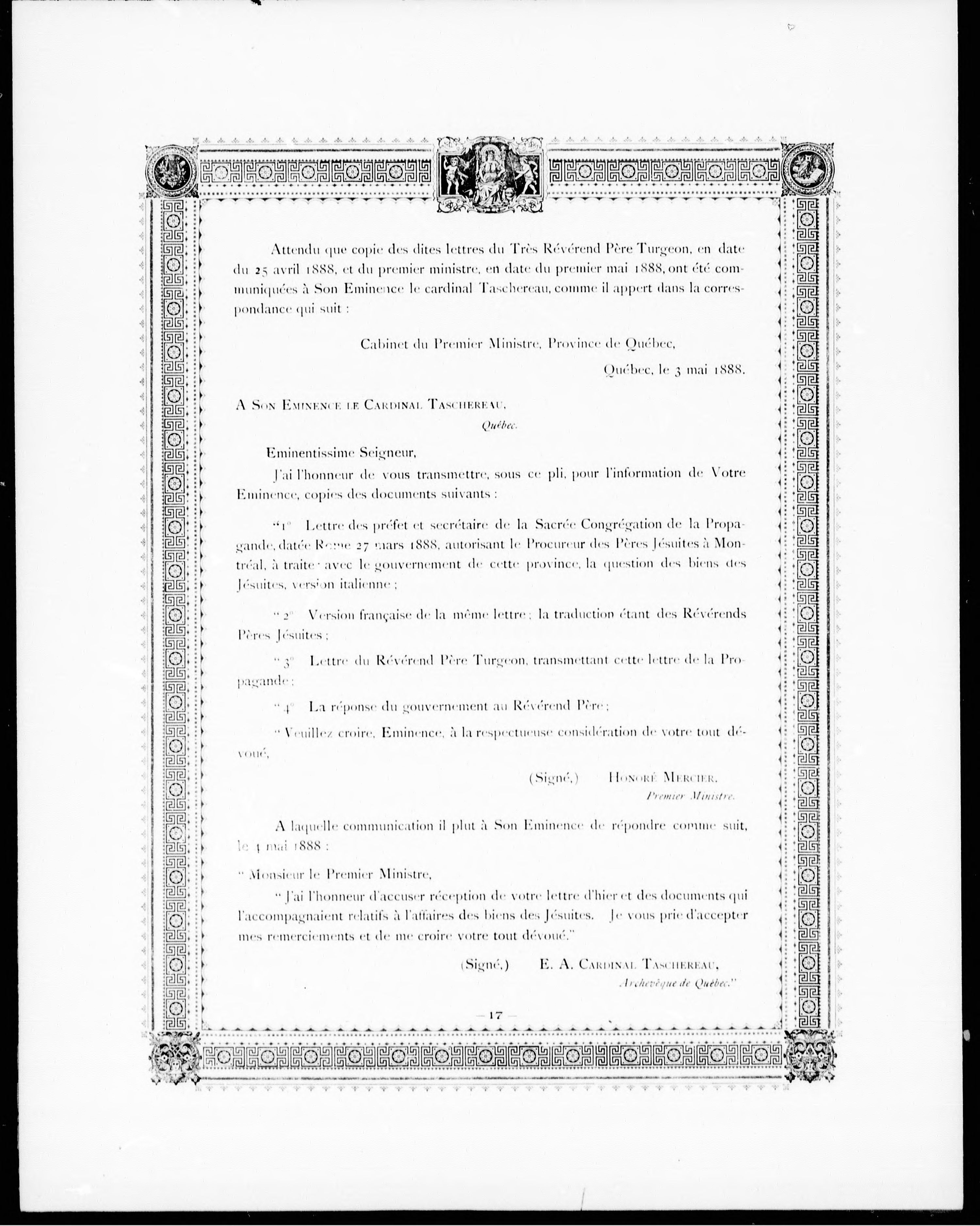 - Documents relatifs au règlements de la question des biens des Jésuites : 1888-1890.