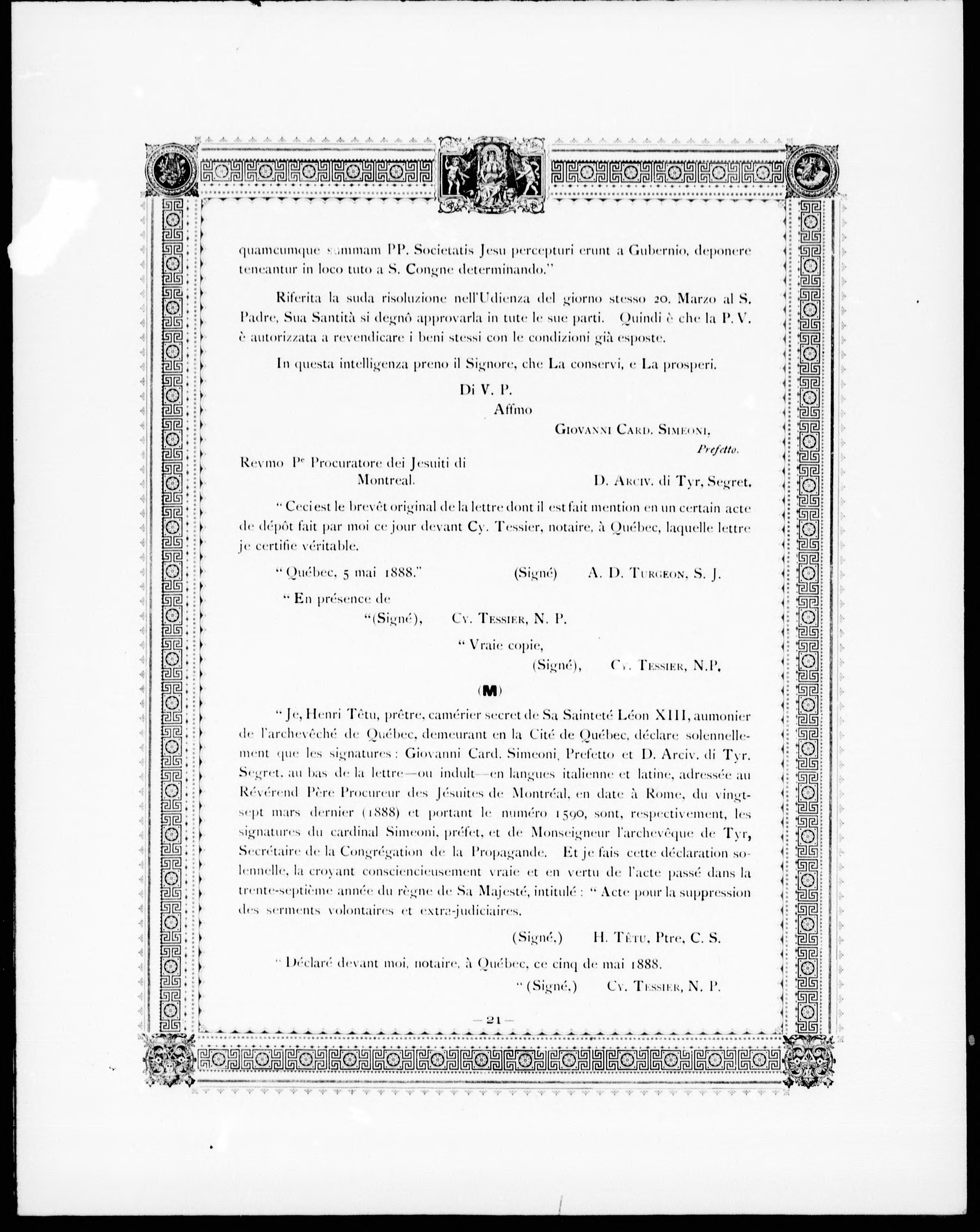 Documents relatifs au règlements de la question des biens des Jésuites : 1888-1890.