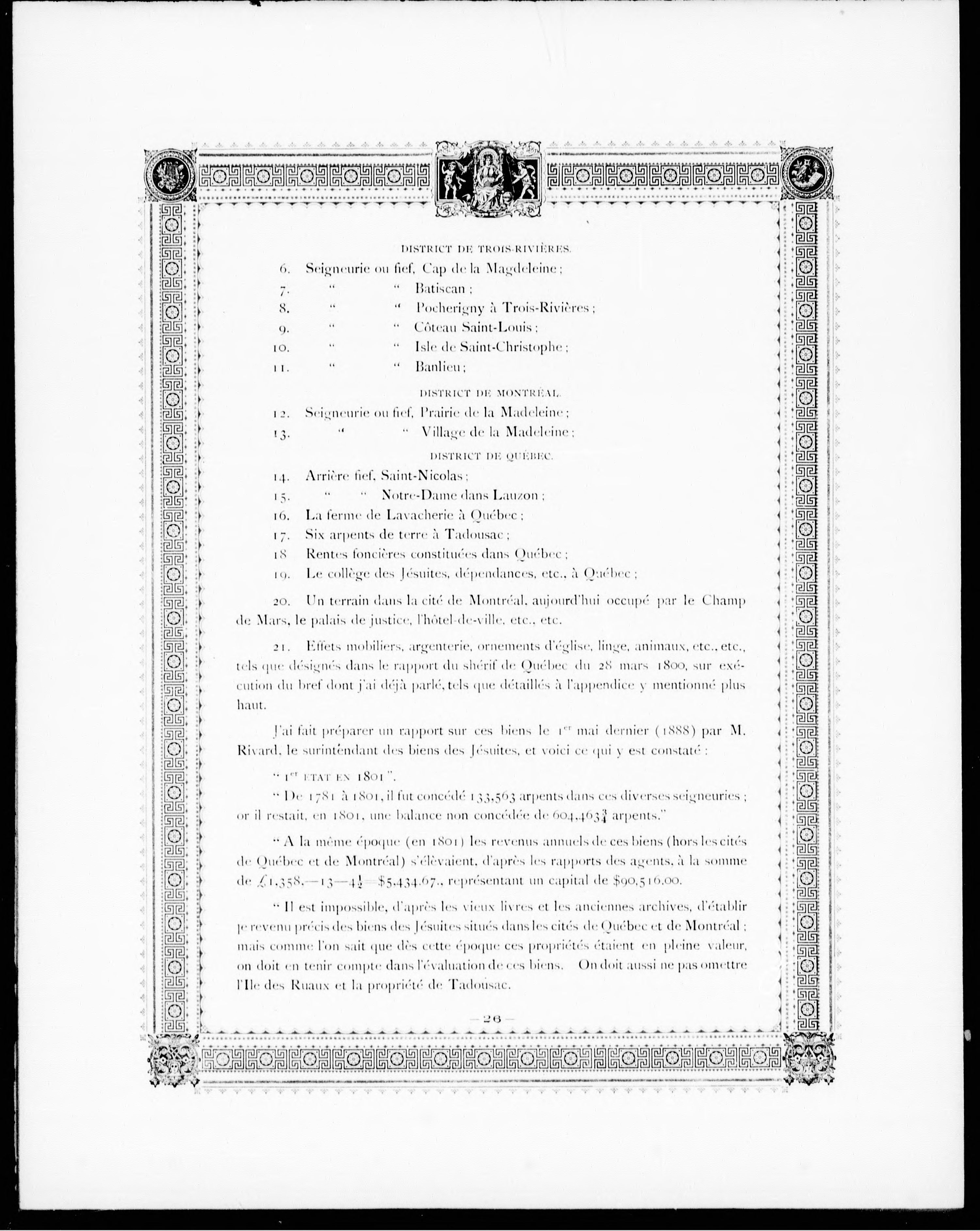 - Documents relatifs au règlements de la question des biens des Jésuites : 1888-1890.