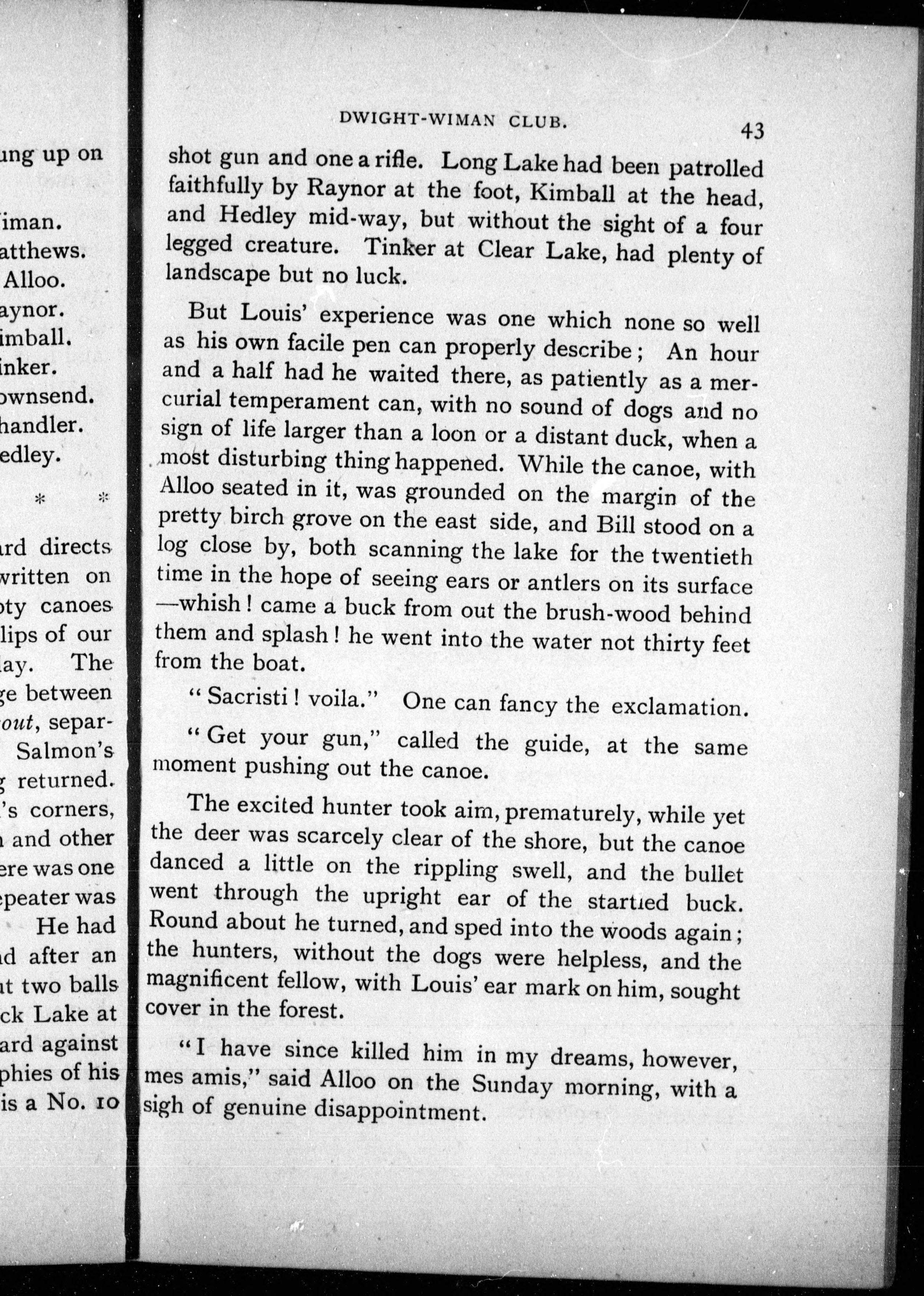 Notes of a hunting trip with the Dwight-Winman club in the Muskoka district, Canada.