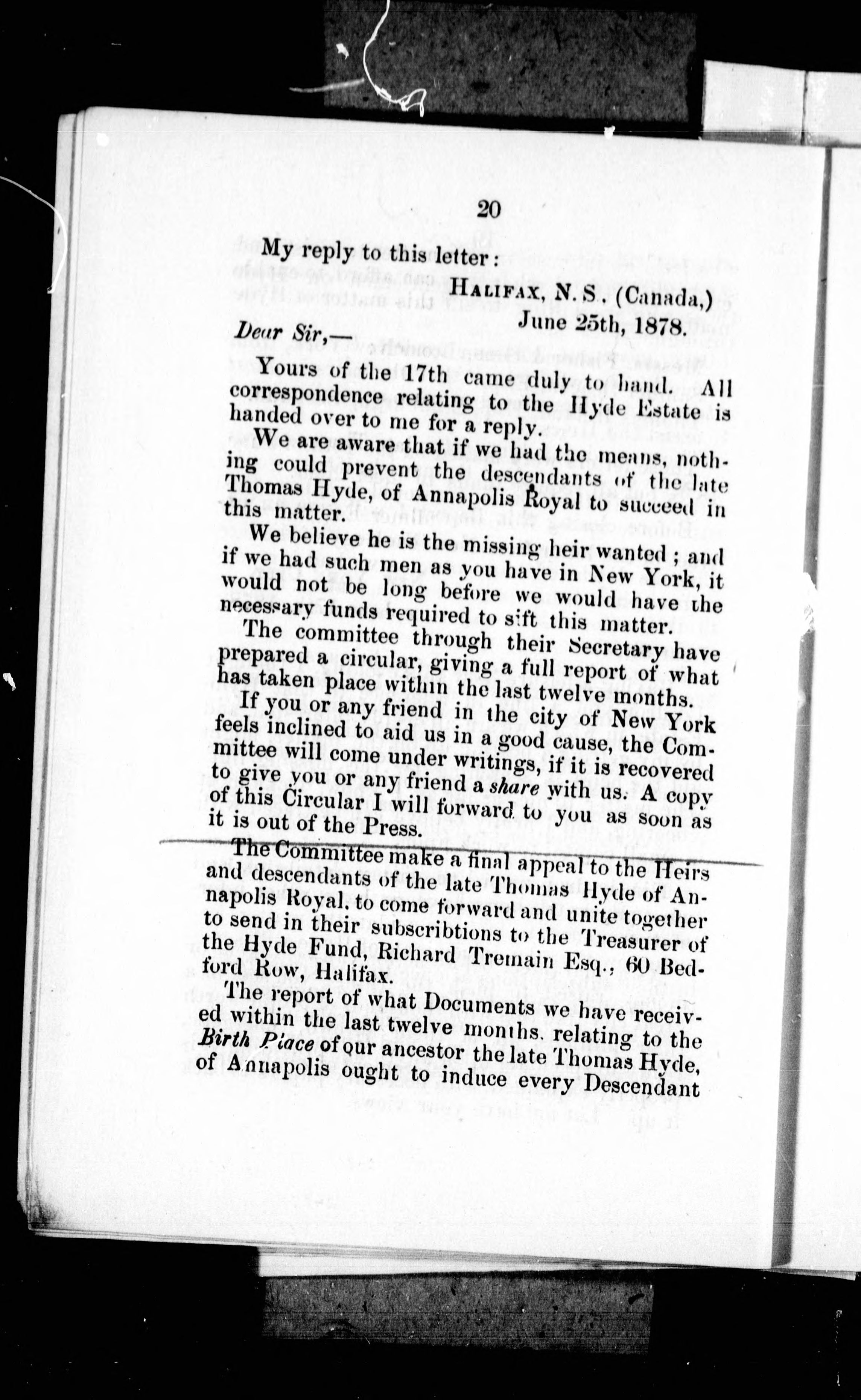 [Halifax, N.S.? : publisher not identified], 1878.