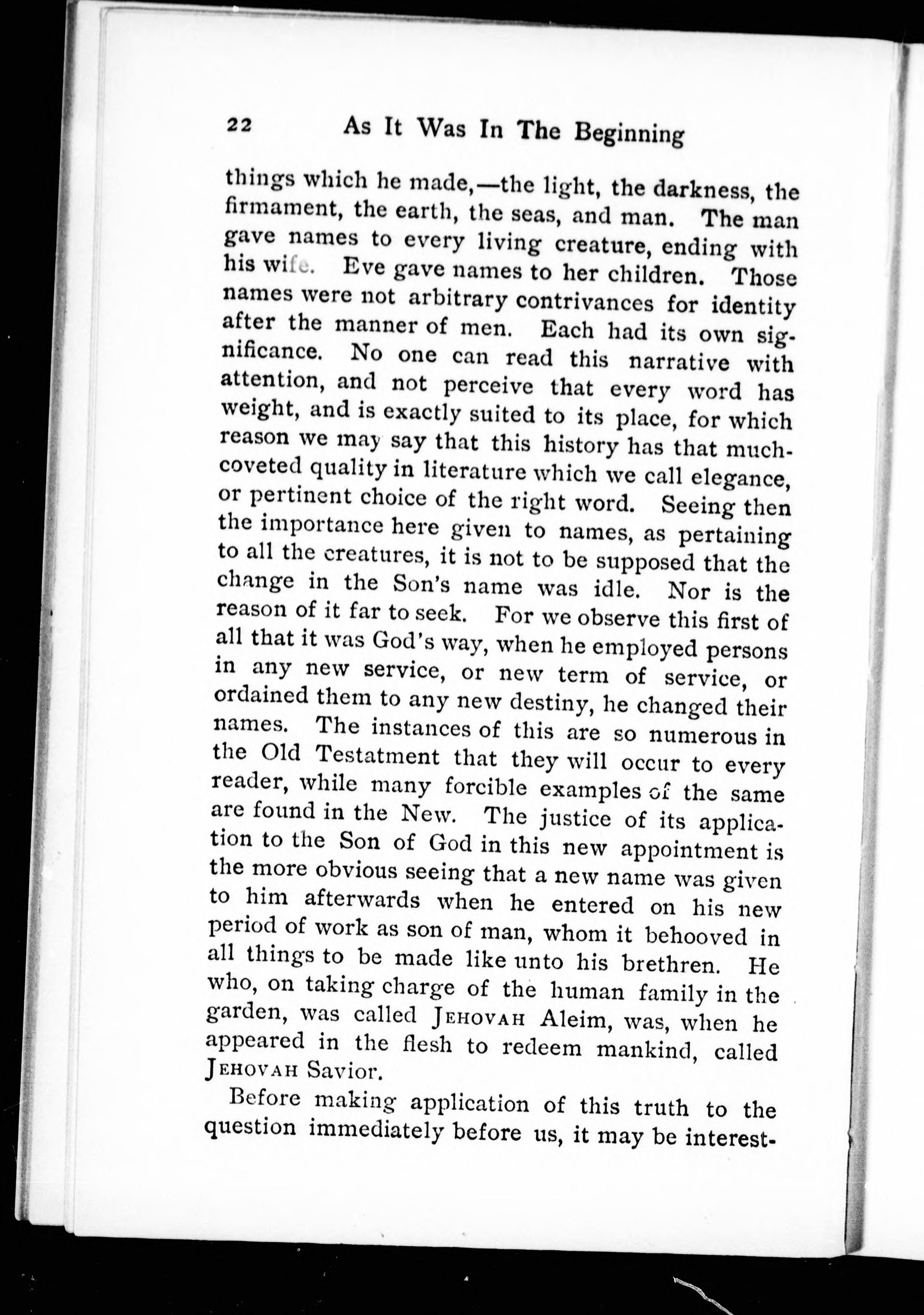 As it was in the beginning, or, The historic principle applied to the Mosaic Scriptures /