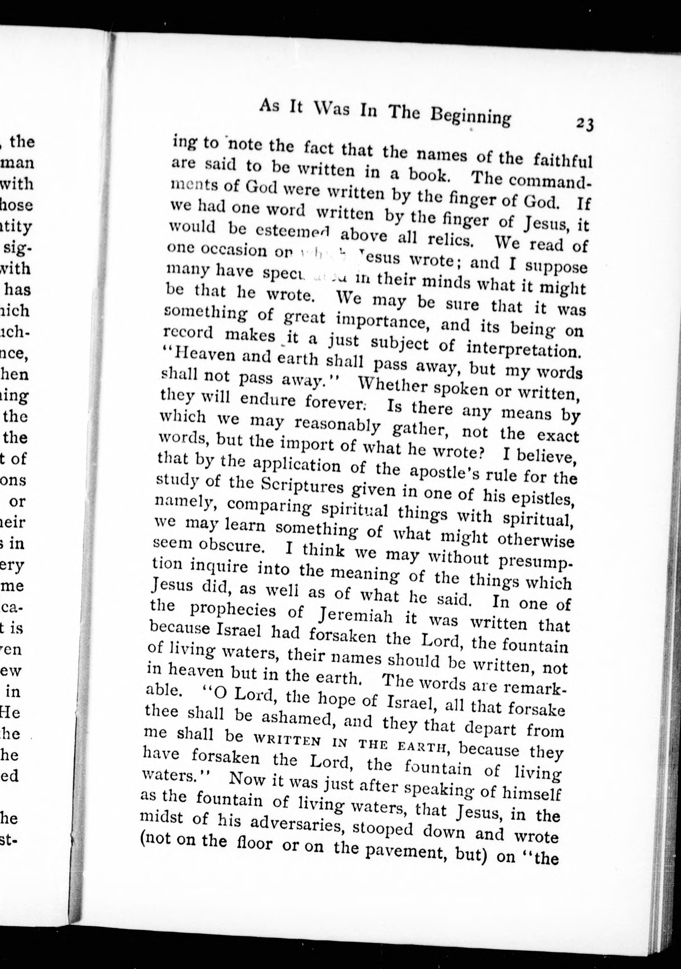As it was in the beginning, or, The historic principle applied to the Mosaic Scriptures /