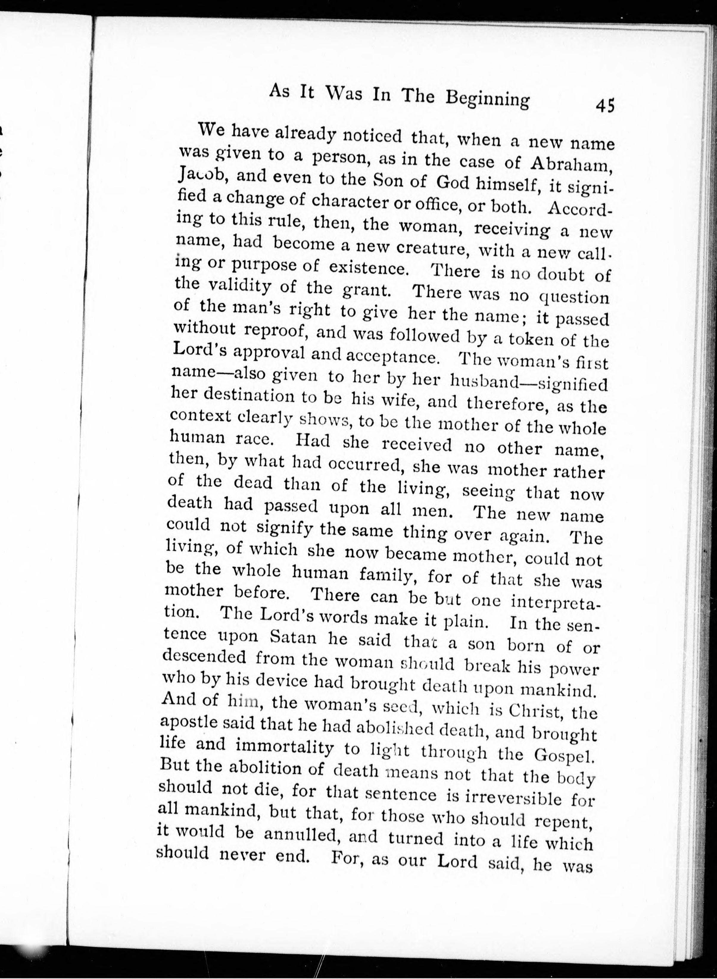 As it was in the beginning, or, The historic principle applied to the Mosaic Scriptures /