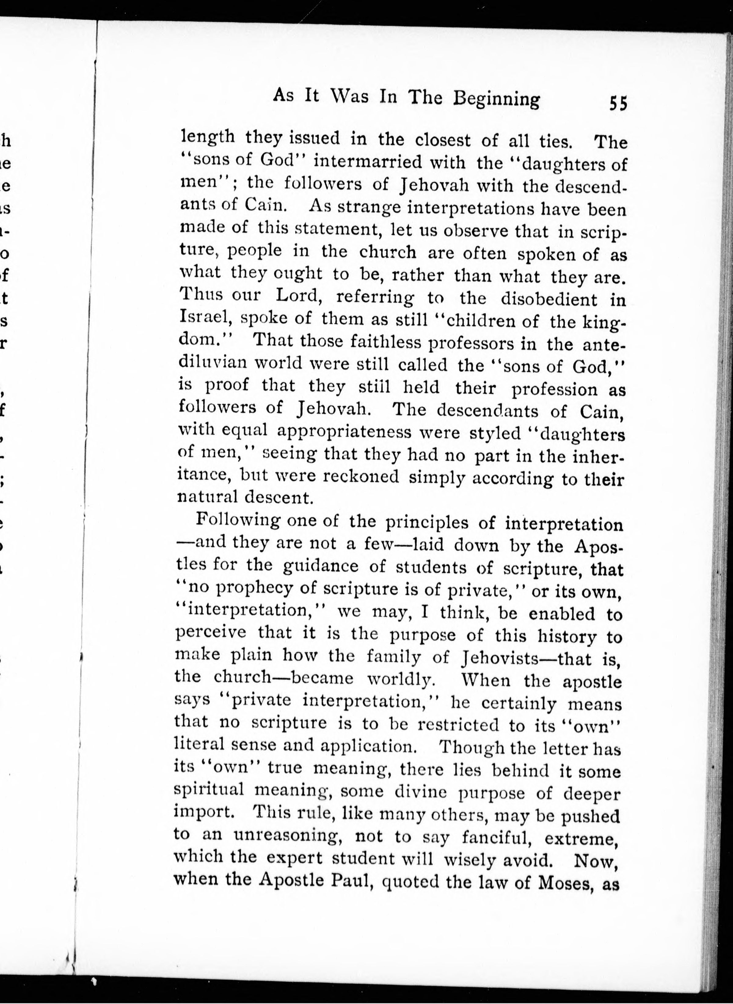 As it was in the beginning, or, The historic principle applied to the Mosaic Scriptures /