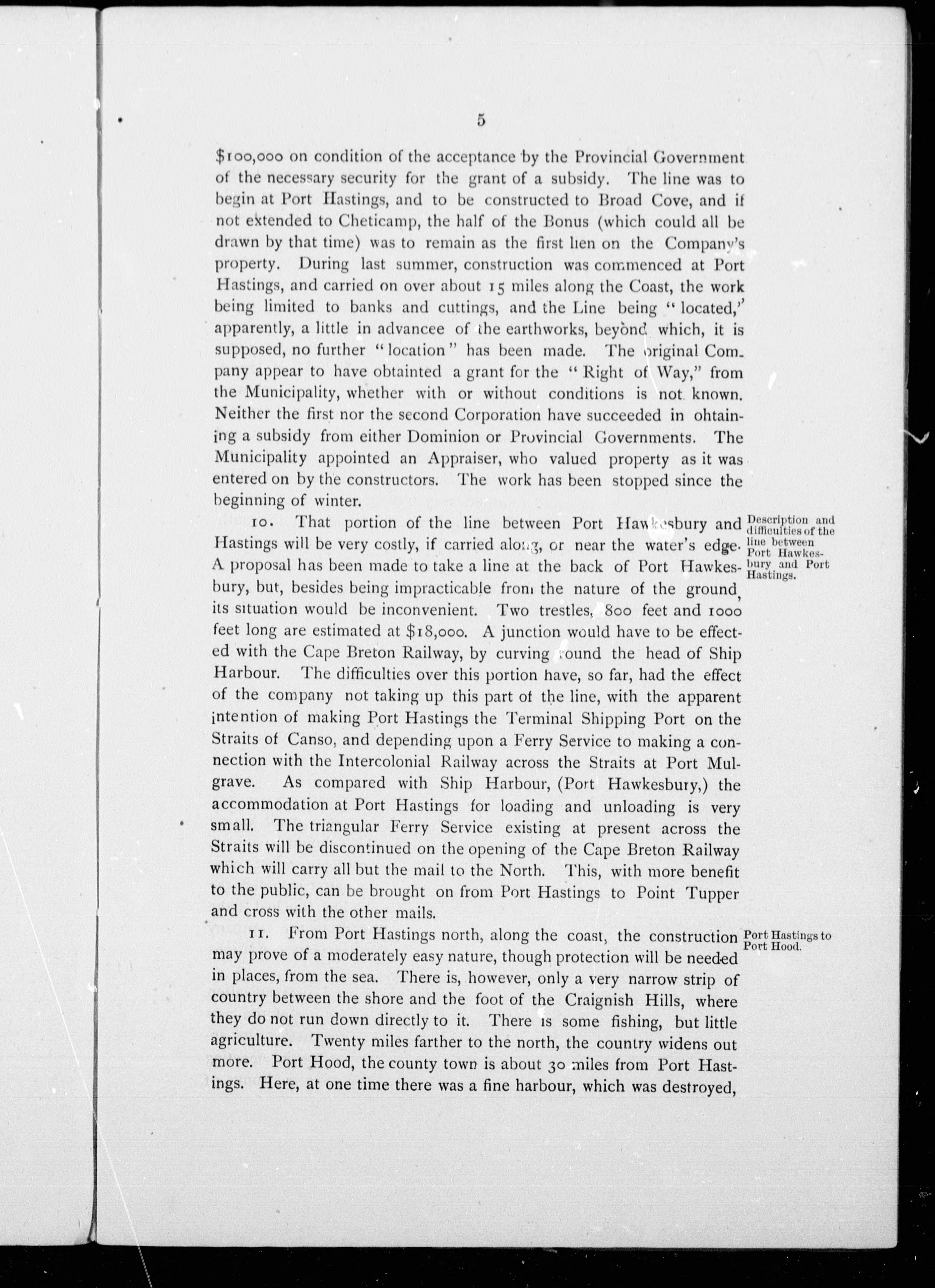 "Together with a description on the country, and of the Inverness and Richmond Railway Co's line; a comparison of the routes, and remarks on the best system of railway lines calculated to open up, in the shortest time, the agricultural and mineral resources of northern Cape Breton"