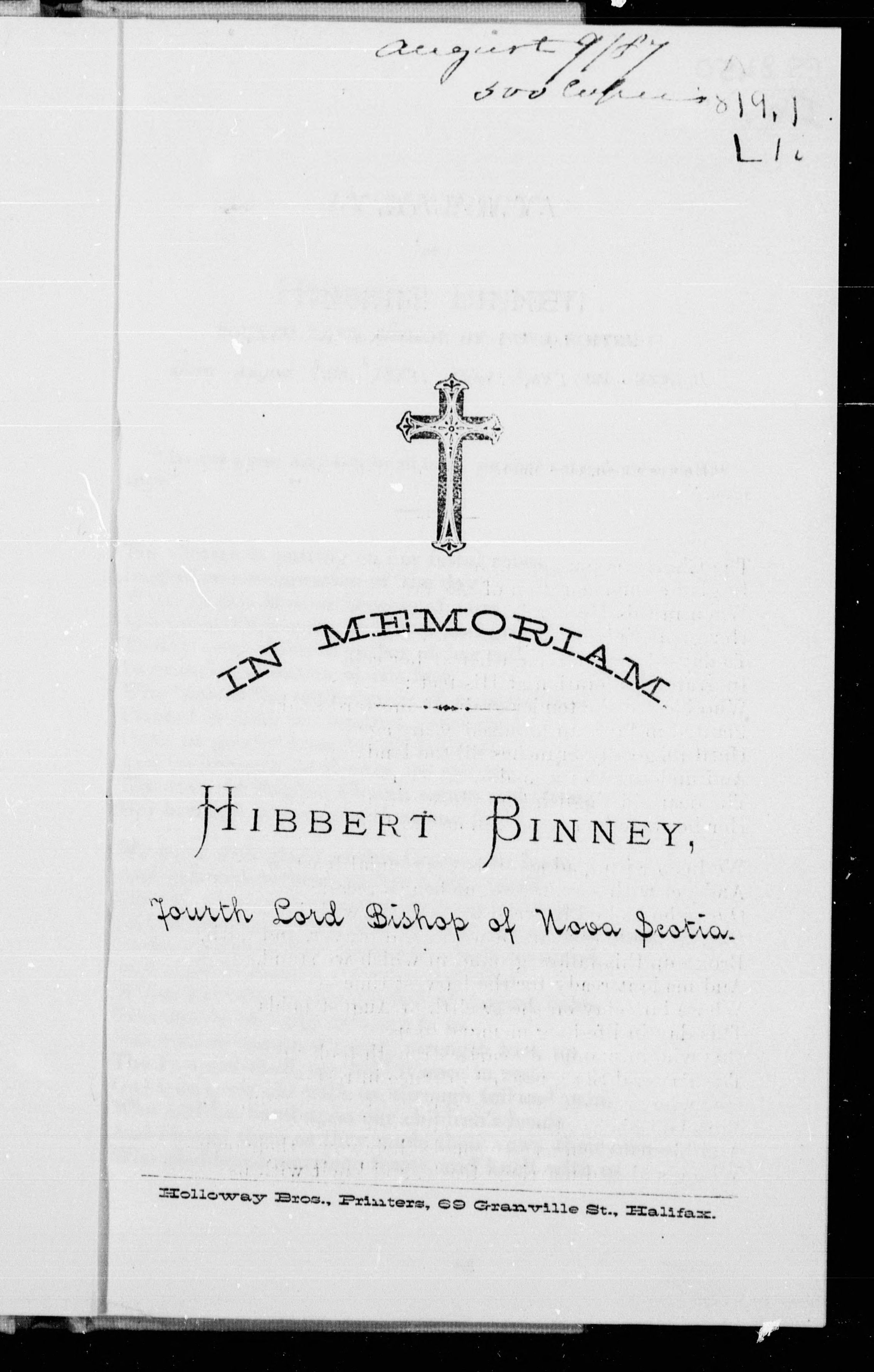 - In memoriam, Hibbert Binney, fourth Lord Bishop of Nova Scotia
